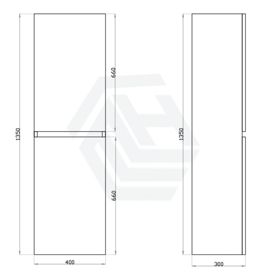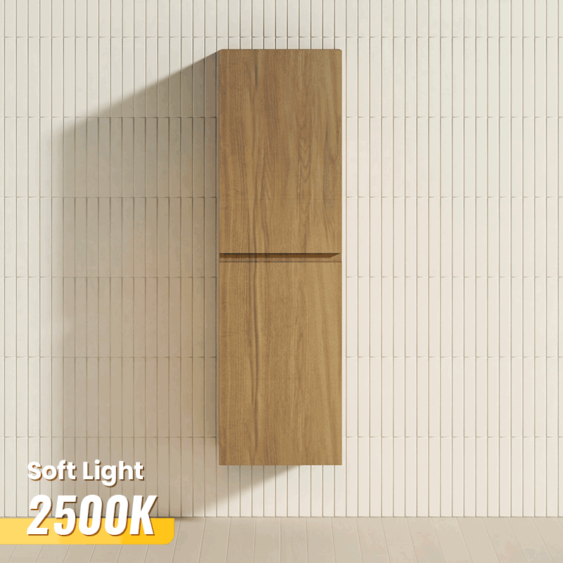 400x300x1350mm Wall Hung Bathroom Cabinet Tall Boy White Oak PVC Filmed MDF Board