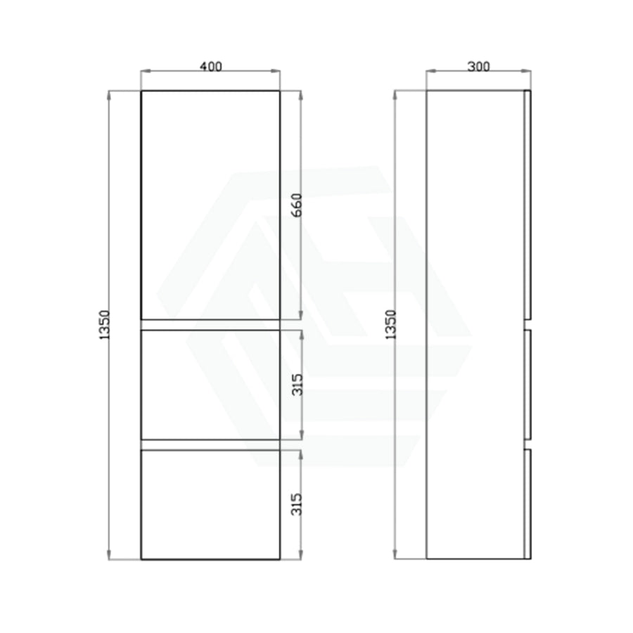 400Lx300Wx1350Hmm Berge Wall Hung Bathroom Cabinet Tall Boy DARK Grey Wood Grain PVC Filmed