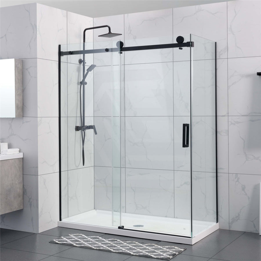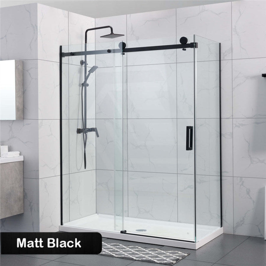 1180-2000x2000mm Sliding Shower Screen L Shape Frameless Black Square Rail Handle 10mm Glass
