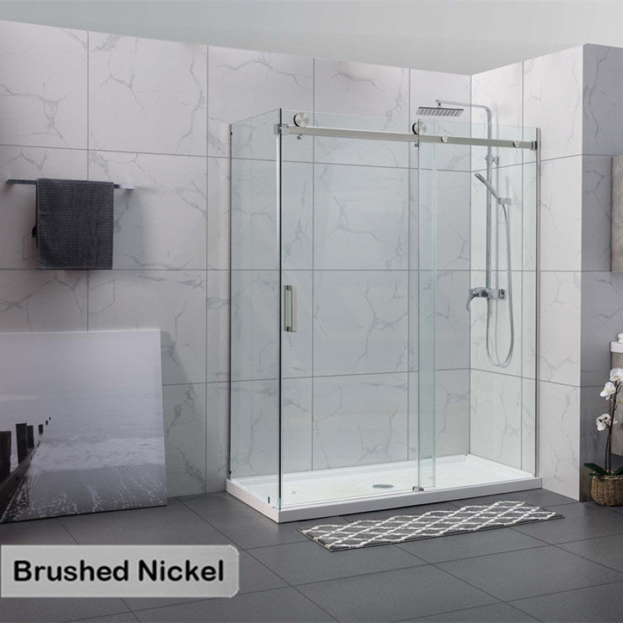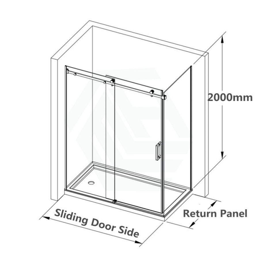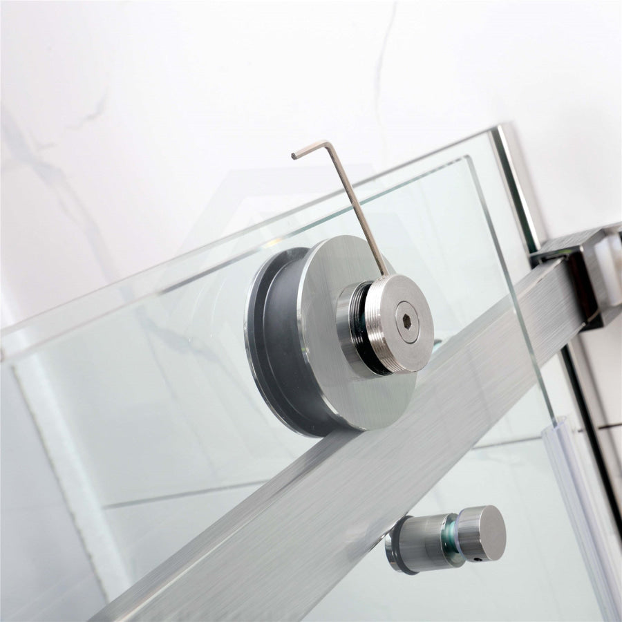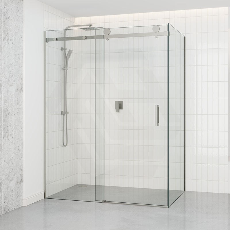 N#1(Nickel) 1180-2000x2000mm Sliding Shower Screen L Shape Frameless Brushed Nickel Square Handle 10mm Glass