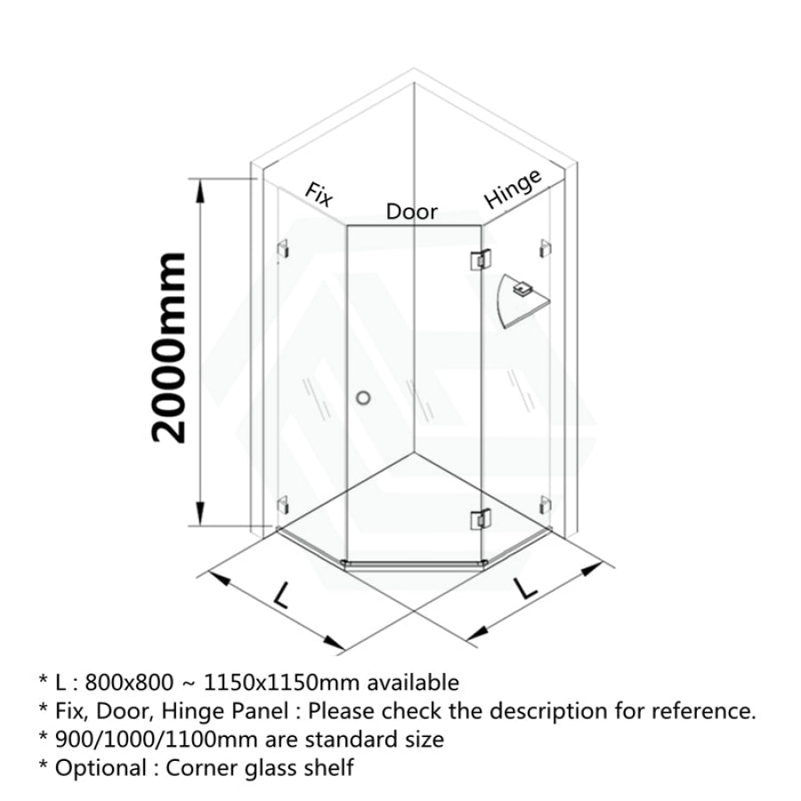 Note: All shower screens are made from AS1288 certified tempered safety glass.