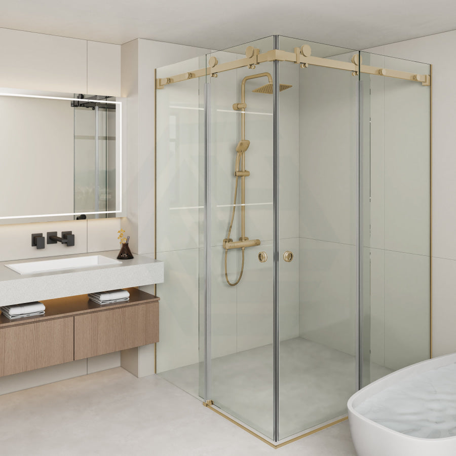 G#1(Gold) 870-1450mm Shower Screen Brushed Gold Frameless Double Sliding 10mm Glass 2000mm Height