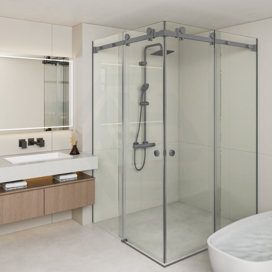 M#1(Gunmetal Grey) 870-1450mm Shower Screen Gunmetal Grey Frameless Double Sliding 10mm Glass 2000mm Height