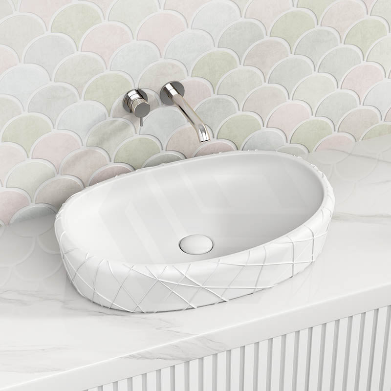 600x390x135mm Oval Curved Design Above-Counter Ceramic Basin In Various Colour