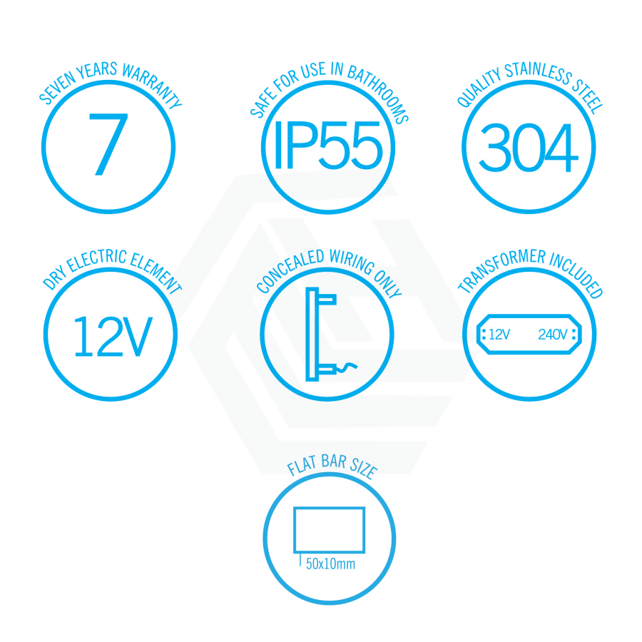 The Thermorail single bar heated towel rails are all 12Volt which means they are safe to be installed anywhere in the bathroom, even close to water. All the 12Volt single bar rails are provided with a transformer in the box. We also recommend the use of a timer to control the rails and save on running costs.