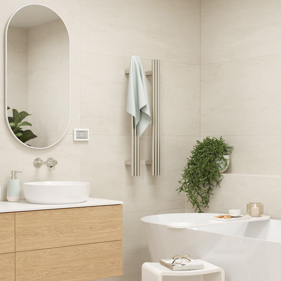 A Heated Towel Rail is an affordable luxury for every bathroom. The Thermorail vertical heated towel rails are designed to help dry your towel and create a design statement in your bathroom particularly in bathrooms with limited wall space. The finish of the VW900 matches perfectly in with your tapware. The triple round profile creates a modern and unique statement in your bathroom and provides comfort and luxury.