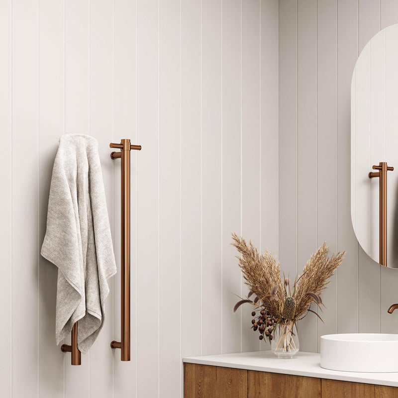 A Heated Towel Rail is an affordable luxury for every bathroom. The Thermorail vertical heated towel rails are designed to help dry your towel and create a design statement in your bathroom particularly in bathrooms with limited wall space. The finish of the VS900H matches perfectly in with your tapware.