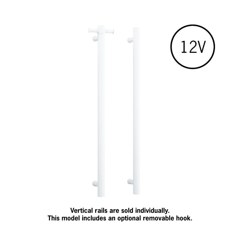 All Thermorail vertical heated towel rails include an optional towel hook which can be fitted on the rail at the time of install. This hook allows for the towel to be more easily hung over the vertical rail. Whilst the vertical rail will assist in drying your towel, it does have less surface contact then a ladder rail and therefore will be less effective in drying and warming your towel than a ladder.