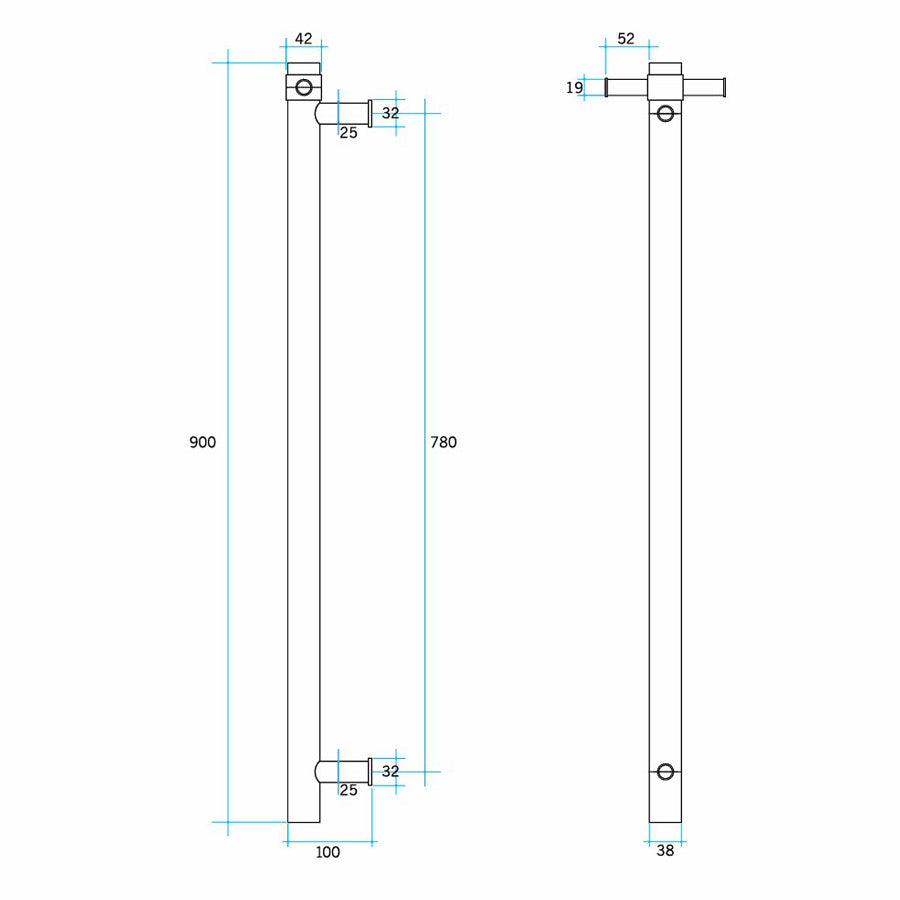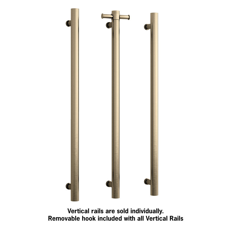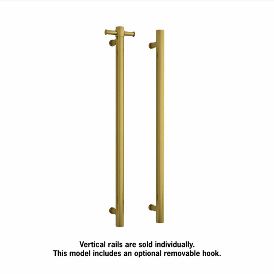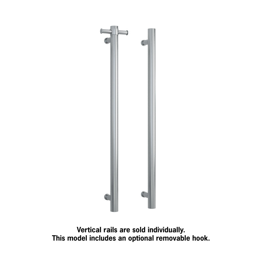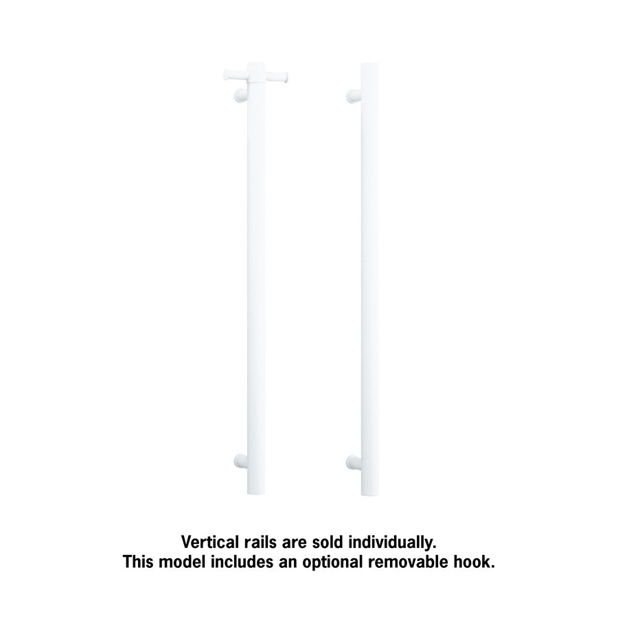 All Thermorail vertical heated towel rails include an optional towel hook which can be fitted on the rail at the time of install. This hook allows for the towel to be more easily hung over the vertical rail. Whilst the vertical rail will assist in drying your towel, it does have less surface contact then a ladder rail and therefore will be less effective in drying and warming your towel than a ladder.