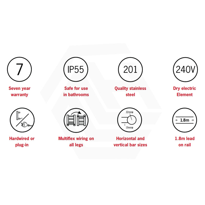 The towel heater features multiflex wiring. This means that you have a connection point on the right or left hand side of the rail, this would be typically at the bottom but the rail can be flipped so that it is at the top and provides the option of hardwired or plugin, all as standard out of the box.