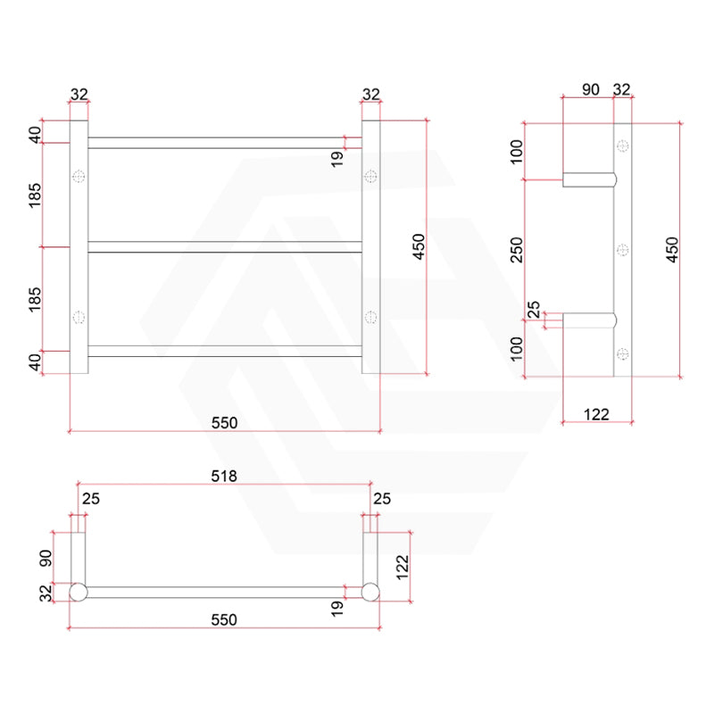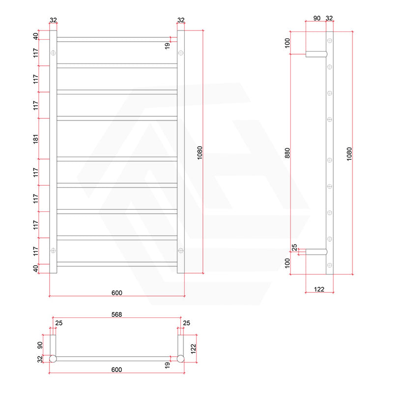 *PLEASE NOTE: Specifications are for information purposes only. Whilst every effort has been made to ensure the product specifications are accurate, due to continuing product development and improvement the specifications are subject to change. Specifications can be used to rough in and fit timber supports in the wall however we recommend no holes are drilled without having the product on site or verifying the details with the manufacturer. Thermogroup cannot be held liable or responsible for errors due to updated specifications.