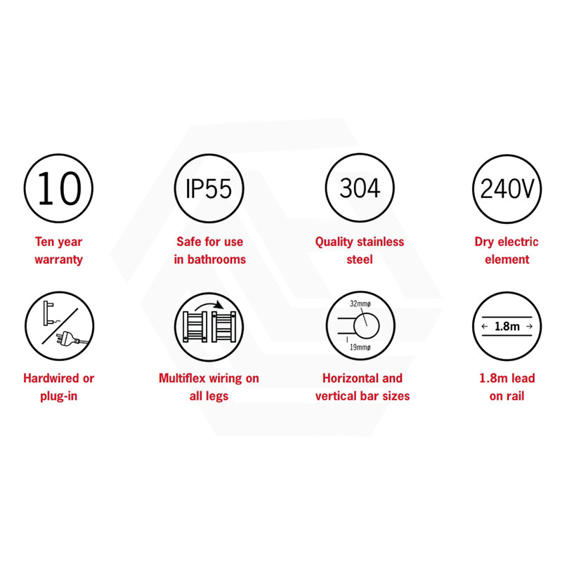 Heated Towel Rails are an affordable luxury for every bathroom for warming and drying your towels. The Heated Towel Rail is a polished stainless steel ladder rail which features multiflex wiring. The curved rail design provides additional hanging space for the towels between the rail and the wall.