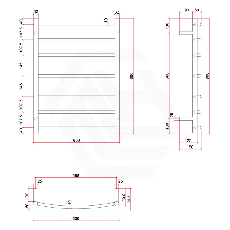 *PLEASE NOTE: Specifications are for information purposes only. Whilst every effort has been made to ensure the product specifications are accurate, due to continuing product development and improvement the specifications are subject to change. Specifications can be used to rough in and fit timber supports in the wall however we recommend no holes are drilled without having the product on site or verifying the details with the manufacturer. Thermogroup cannot be held liable or responsible for errors due to updated specifications.