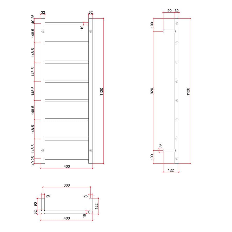 ThermoGroup 4-14 Bars 240V Straight Round Ladder Heated Towel Rail Variant Colour Available