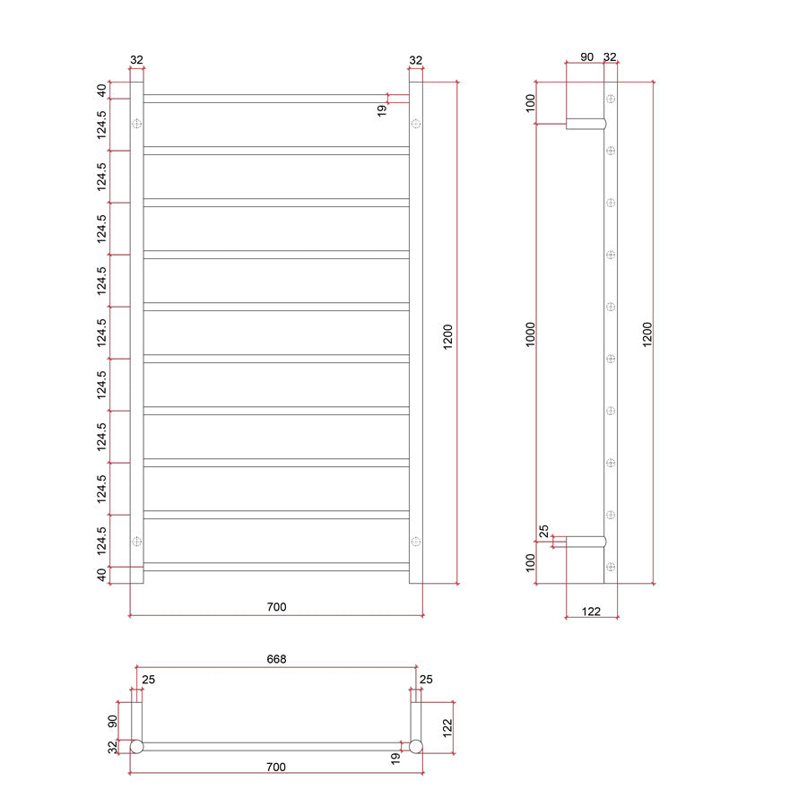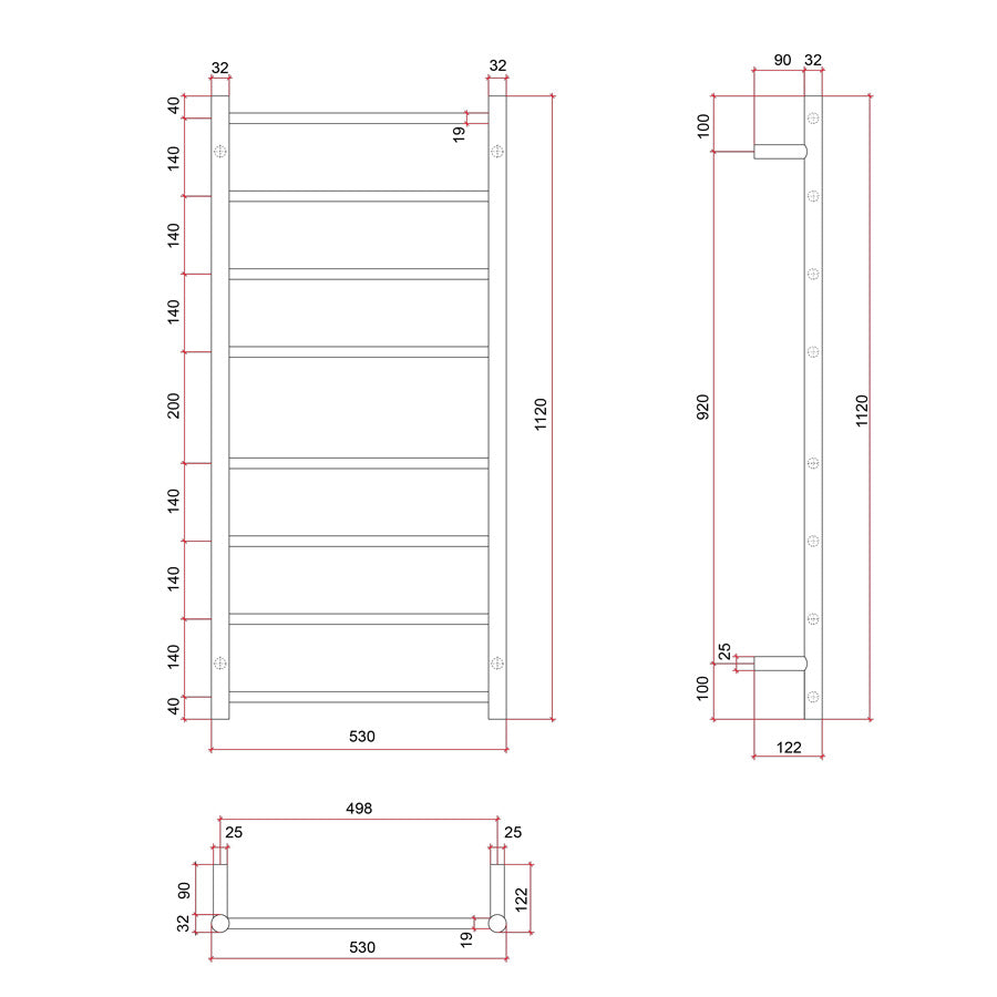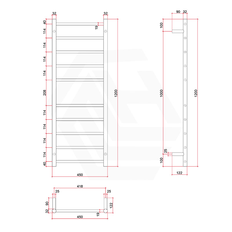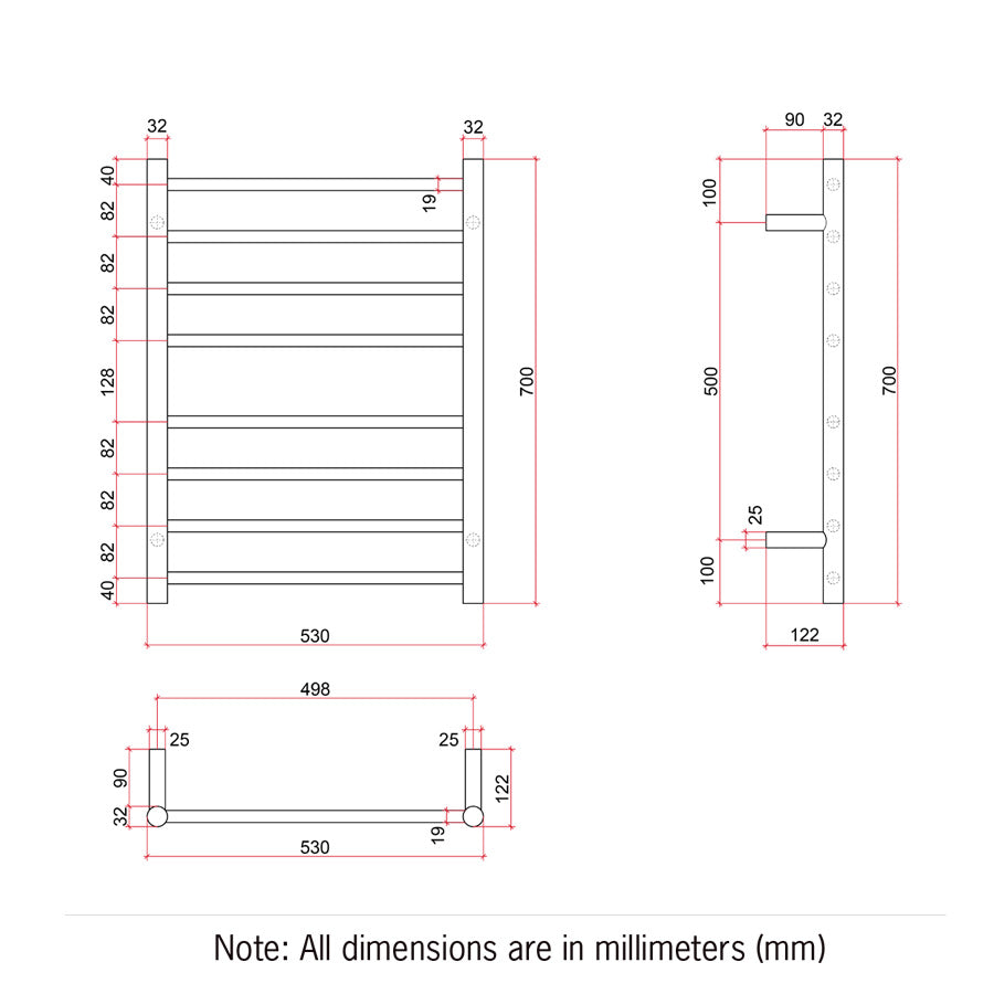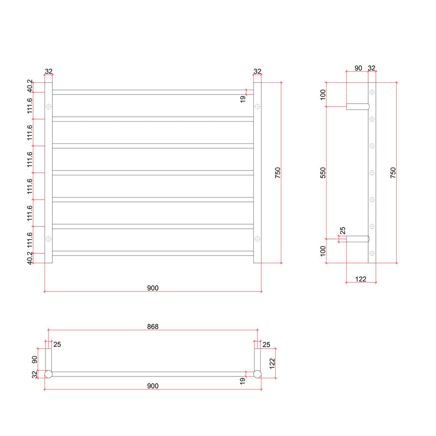 *PLEASE NOTE: Specifications are for information purposes only. Whilst every effort has been made to ensure the product specifications are accurate, due to continuing product development and improvement the specifications are subject to change. Specifications can be used to rough in and fit timber supports in the wall however we recommend no holes are drilled without having the product on site or verifying the details with the manufacturer. Thermogroup cannot be held liable or responsible for errors due to updated specifications.
