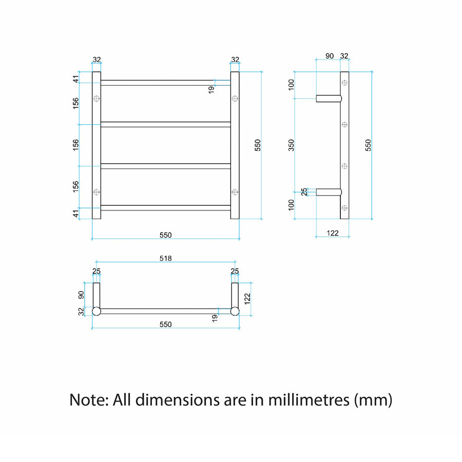 Heated Towel Rails are an affordable luxury for every bathroom for warming and drying your towels. The Heated Towel Rail is a 550x550 4 bars stainless ladder rail.
