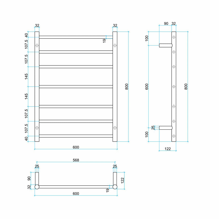 Heated Towel Rails are an affordable luxury for every bathroom for warming and drying your towels. The Heated Towel Rail is a 600x800 7 bar stainless steel ladder rail.