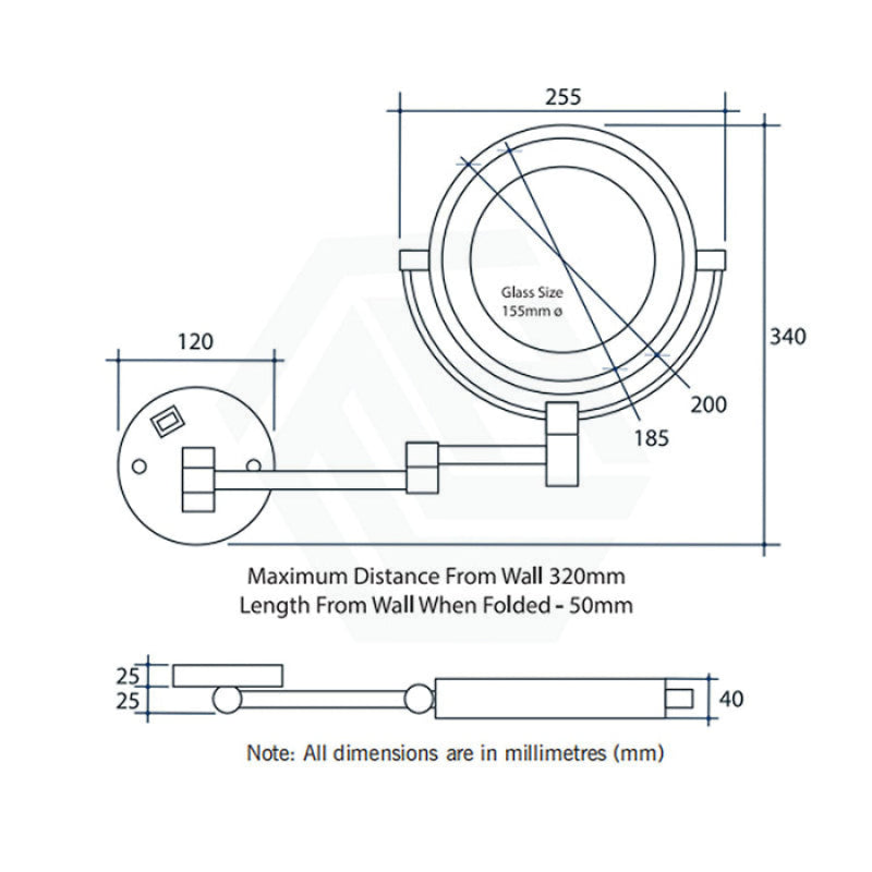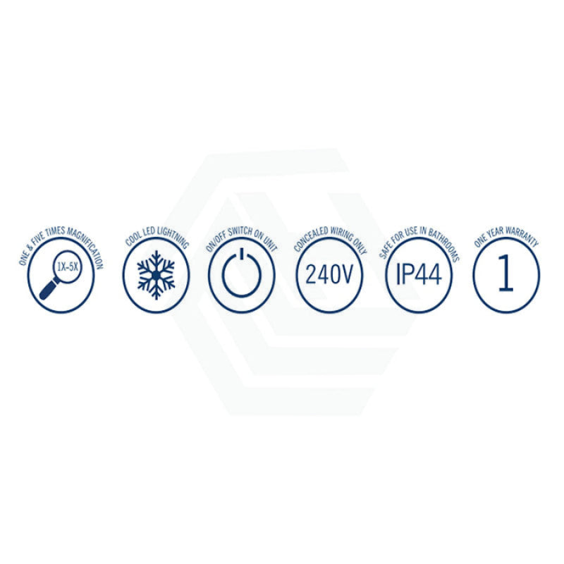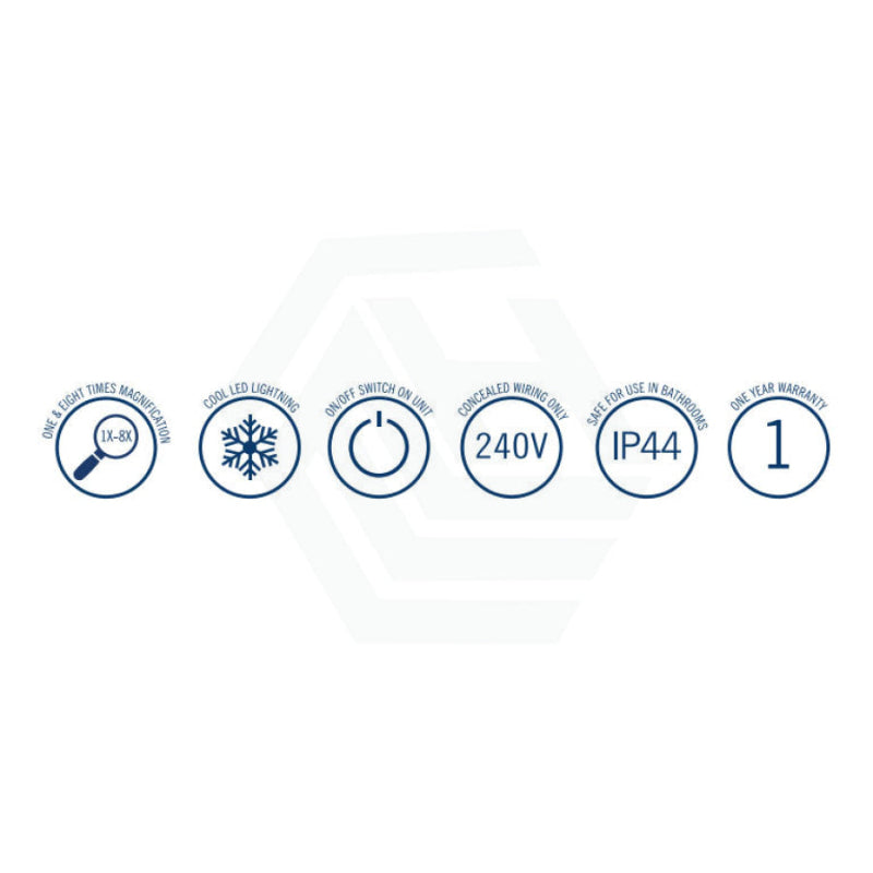 Thermogroup 200mm Chrome LED Makeup Mirror 1&5/8x Magnifier Concealed/Exposed