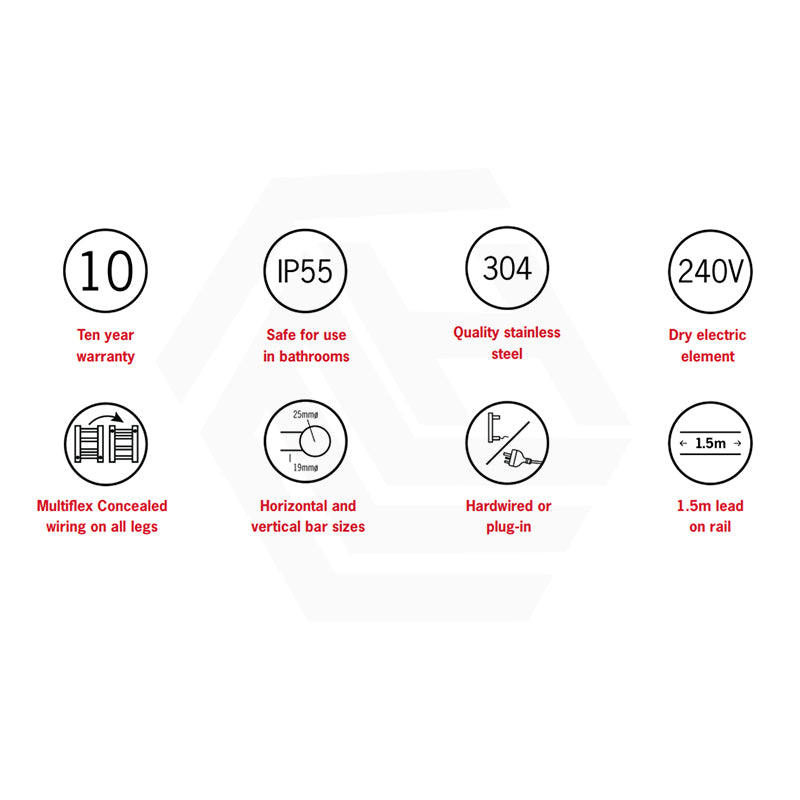 The SB34M towel heater features multiflex wiring. This means that you have a connection point on the right or left-hand side of the rail, this would be typically at the bottom but the rail can be flipped so that it is at the top and provides the option of hardwired or plugin, all as standard out of the box.