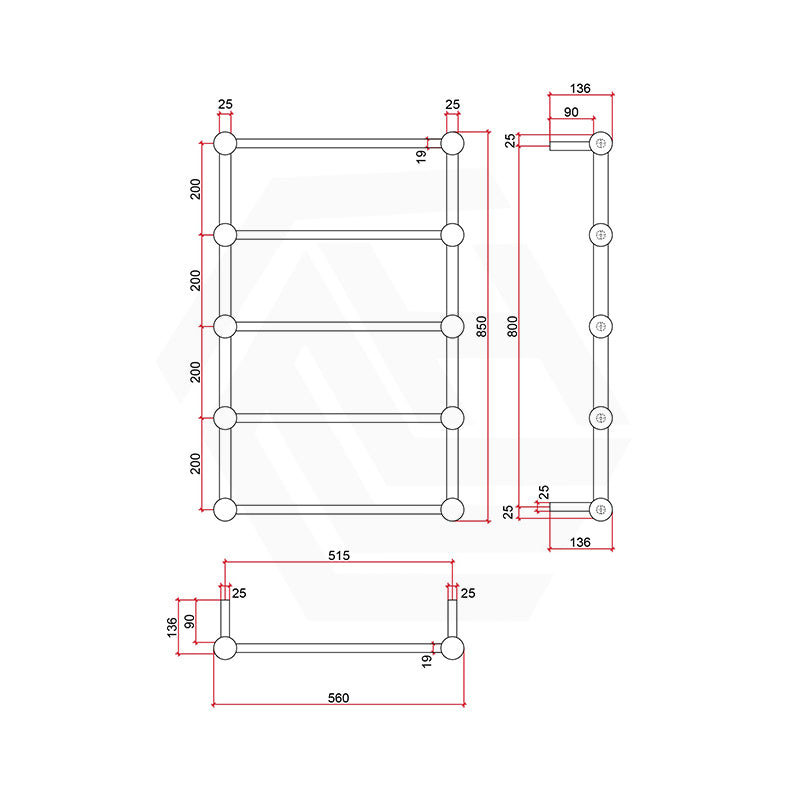 ThermoGroup Thermorail 560x850x140mm 240V Straight Round Heritage Ladder Polished Stainless Steel Heated Towel Rail 5 Bars