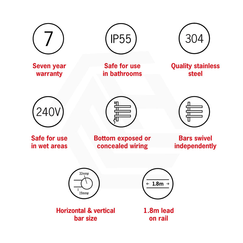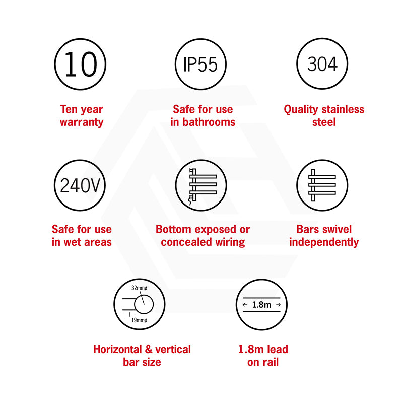 The electric towel rail is designed to rapidly heat up and reach a temperature of around 45-55 degrees. We recommend using a timer to allow you to set and forget and control your running costs. As the rail is electric it is very energy efficient and can cost as little as a $1 a week to run.