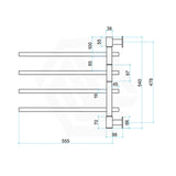 ThermoGroup Thermorail 600x540x99mm 240V Straight Square Swivel Polished Stainless Steel Heated Towel Rail 4 Bars