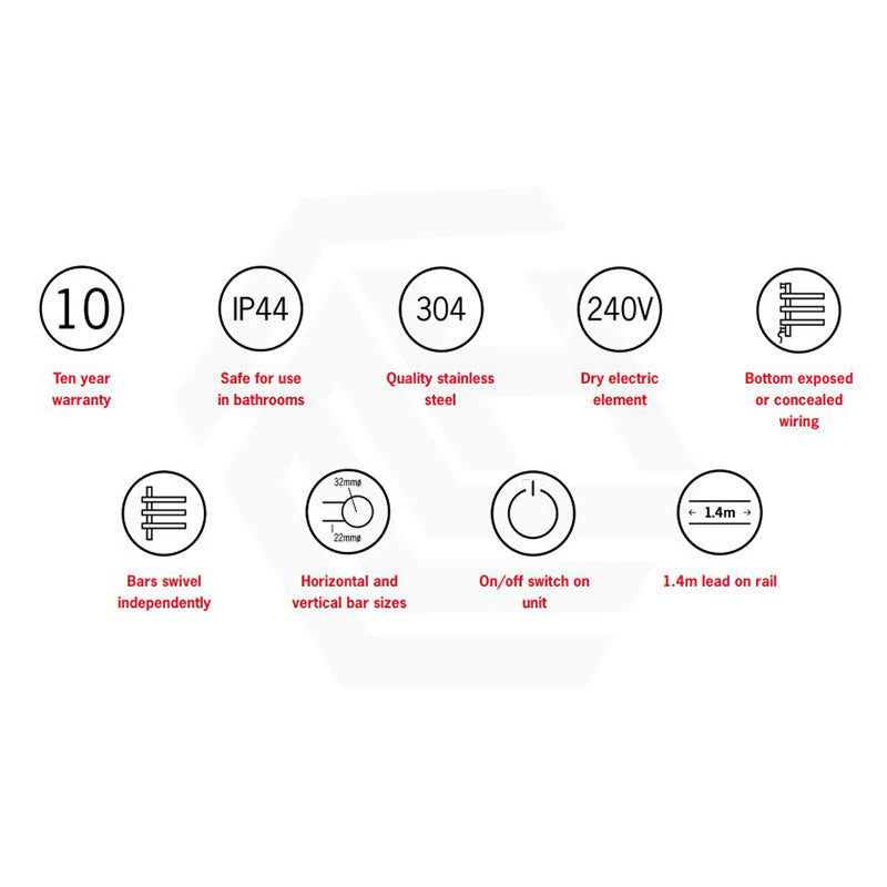 The electric towel rail is designed to rapidly heat up and reach a temperature of around 45-55 degrees. The rail can be operated using an on/off switch however we recommend using a timer to allow you to set and forget and control your running costs.