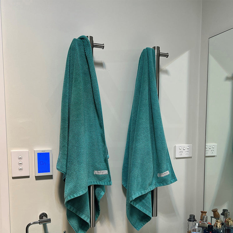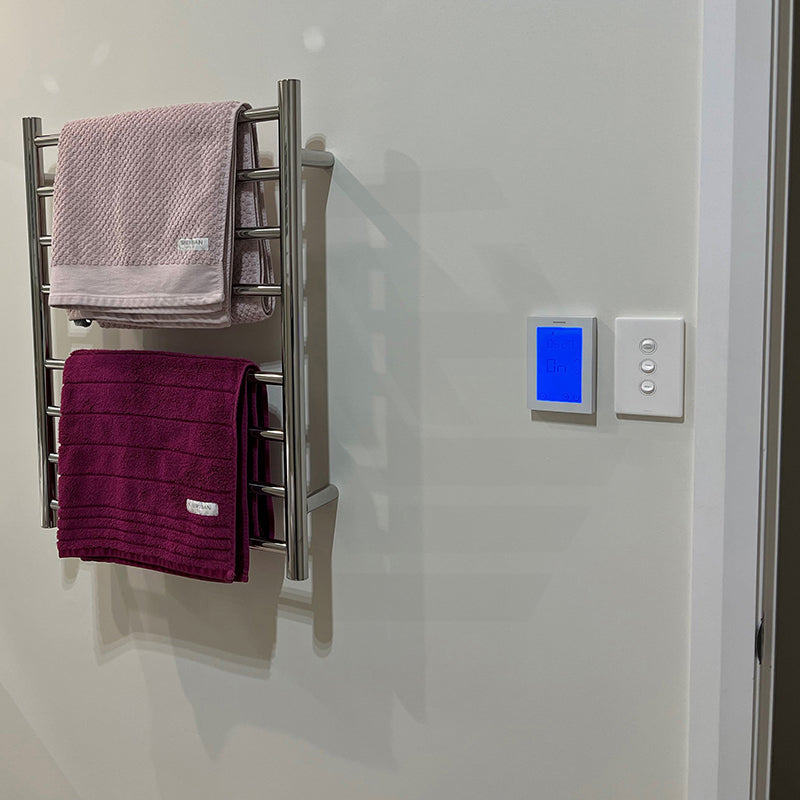 The advantage of a timer is that you can simply set and forget whilst experiencing a warm dry towel every time you use the bathroom. It also ensures that the rail is never left on in the bathroom therefore it helps you to reduce running costs.