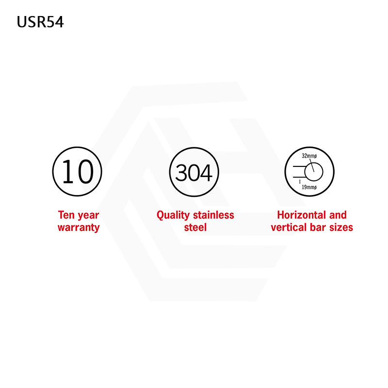 Themorail USR54 / USR54B is a non-heated ladder rail which is straight round profile. The USR54 / USR54B is a 630x800mm polished stainless steel rail with 5 horizontal bars.