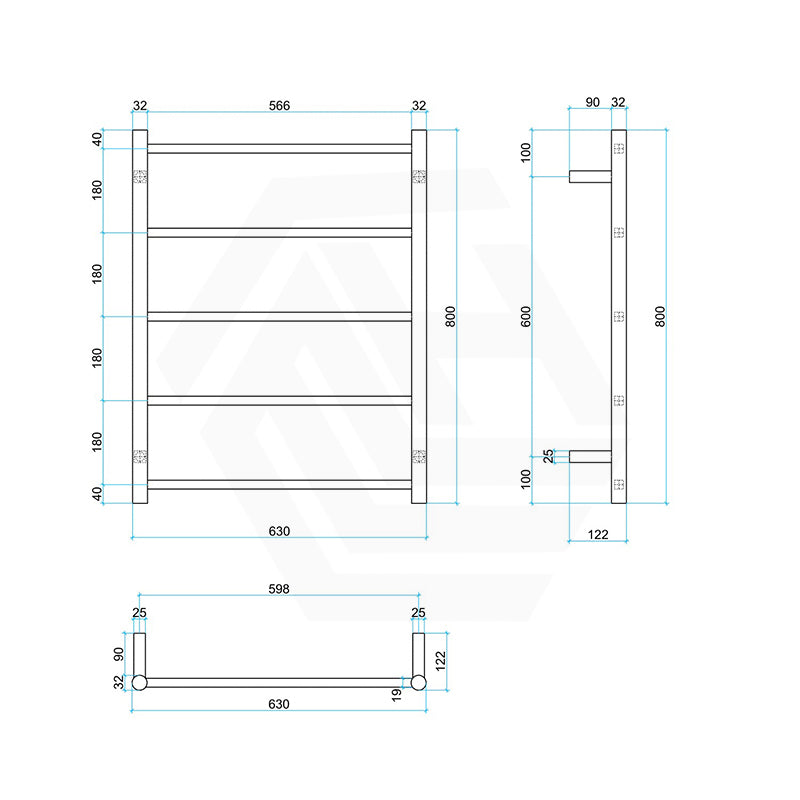 ThermoGroup Thermorail 630x800x122mm Non-Heated Straight Round Ladder Towel Rail 5Bars Variant Colour Available