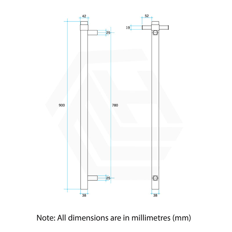Please Note: Specifications are for information purposes only. Whilst every effort has been made to ensure the product specifications are accurate, due to continuing product development and improvement the specifications are subject to change. Specifications can be used to rough in and fit timber supports in the wall however we recommend no holes are drilled without having the product on site or verifying the details with the manufacturer.