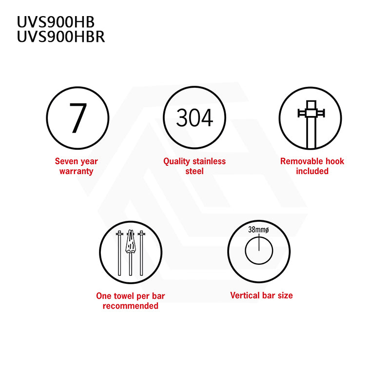 All Thermorail Non-Heated vertical towel rails include an optional towel hook which can be fitted on the rail at the time of installation. This hook allows for the towel to be more easily hung over the vertical rail or for hanging smaller hand towels or washers.
