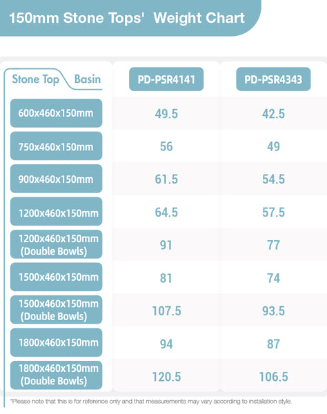 150mm thick stone top, well-assembled with a semi-recessed basin, is highly recommended to be installed onto FREESTANDING VANITIES.