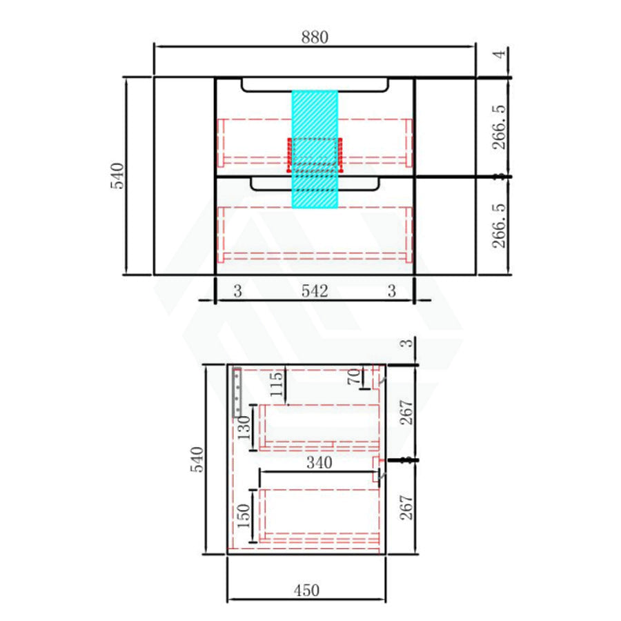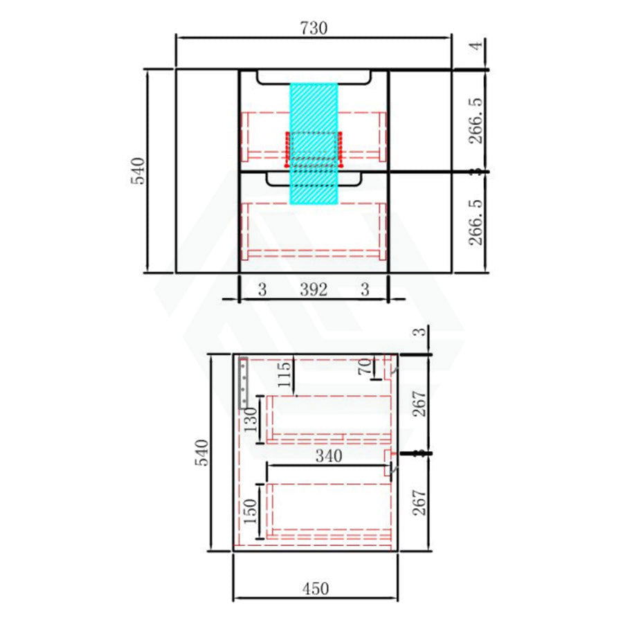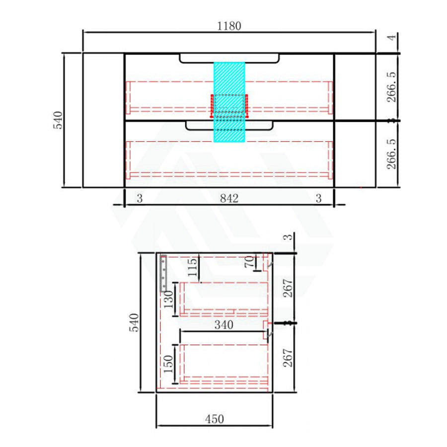 Please note that if you choose to drill holes for the tap at the 10 o'clock and 2 o'clock positions on the stone top, there is a high likelihood of encountering the partition panels inside the cabinet. In such cases, it will be necessary for your plumber to make cuts inside the cabinet.