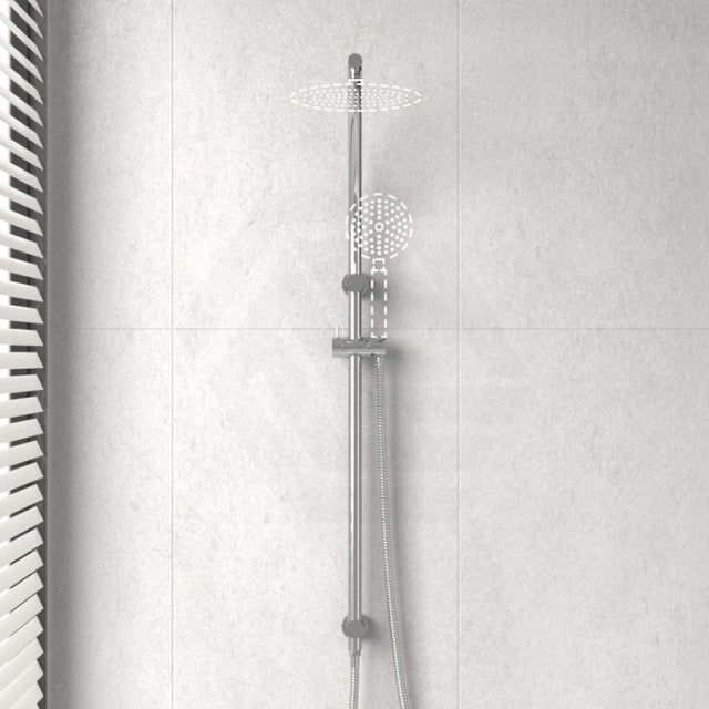 Round Top Water Inlet Twin Shower Rail With Diverter Available In Colours
