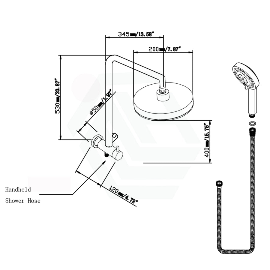8 inch 530mm Height Round Chrome Twin Shower Station Top Water Inlet with 3 Functions Handheld