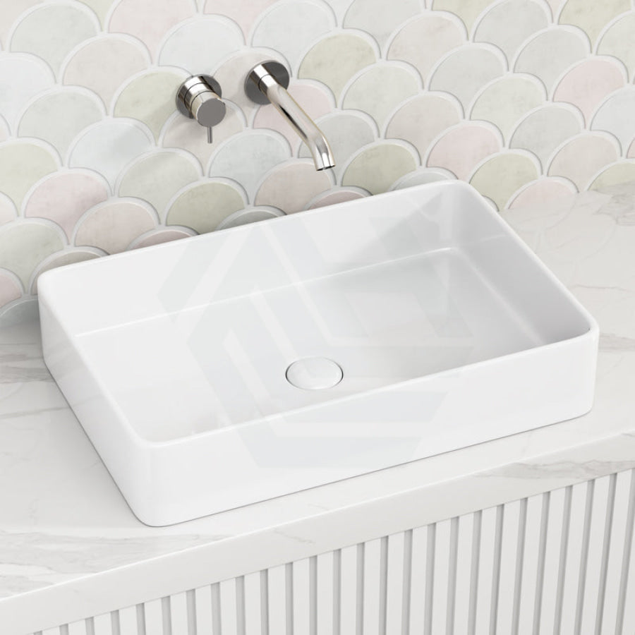 605x405x115mm Ultra Slim Rectangle Gloss White Above Counter Ceramic Wash Basin