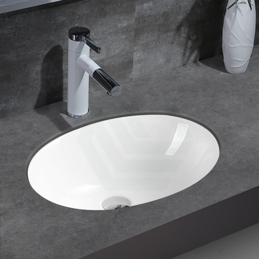 450x380x175mm Oval Under Mount Gloss White Ceramic Basin