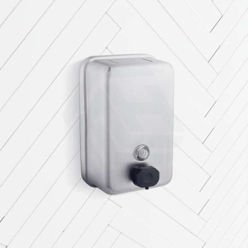 Poseidon 1.2L Tank Type Vertical Liquid Soap Dispenser Satin Stainless Steel Push-in Valve Surface Mounted