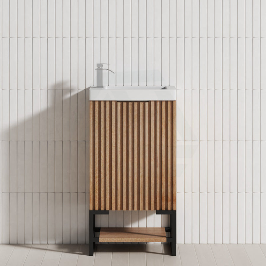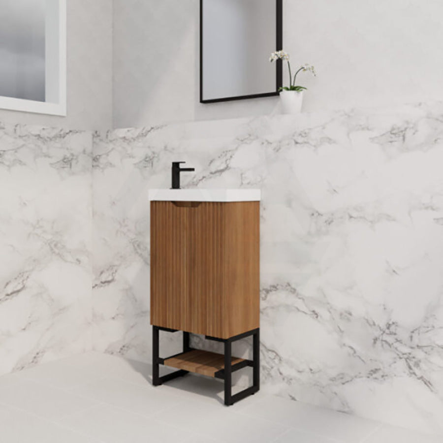 450x250x830mm Vienna Solid Timber Fluted Freestanding One Door Mini Vanity with Overflow Poly Top