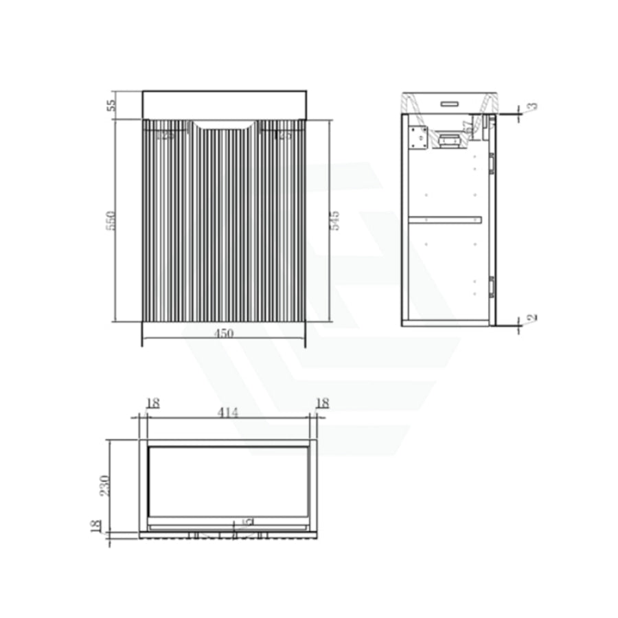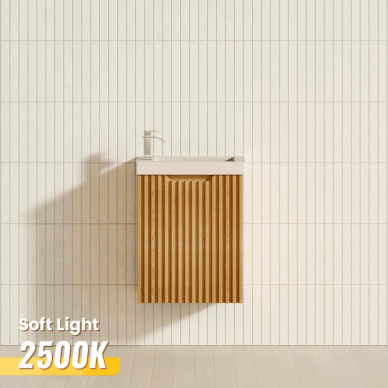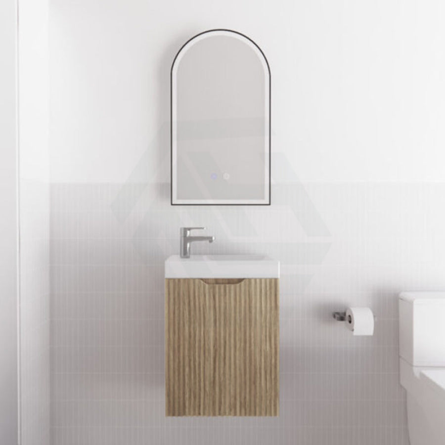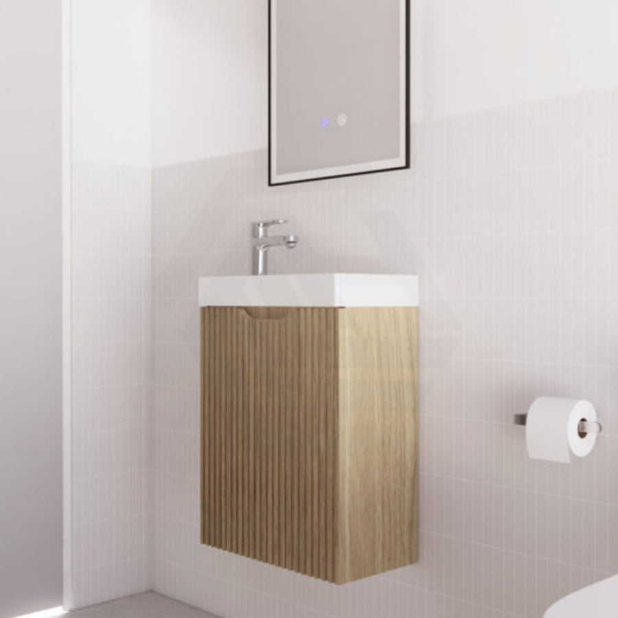 450x250x550mm wall hung vanity is built to impress, with its PVC coated left hand hinge and fluted panel for extra durability. It's the ideal choice for a mini bathroom, offering an American oak colour that will complement any style.