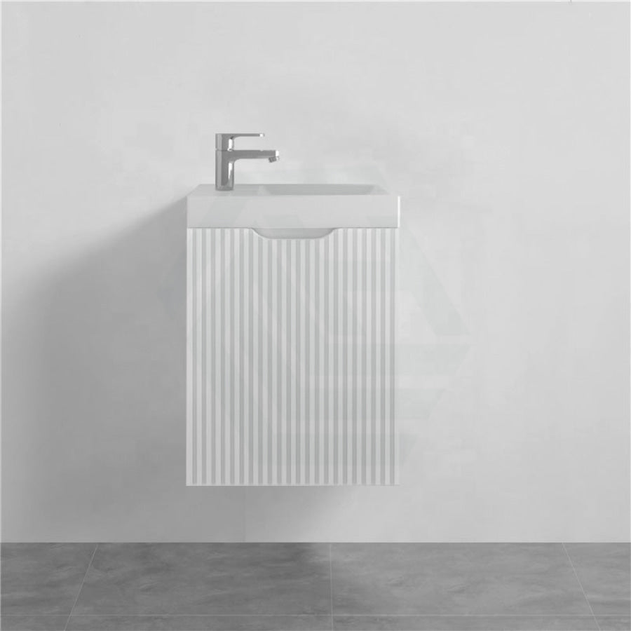 450x250x550mm wall hung vanity is built to impress, with its PVC coated left hand hinge and fluted panel for extra durability. It's the ideal choice for a mini bathroom, offering an Matt White colour that will complement any style.