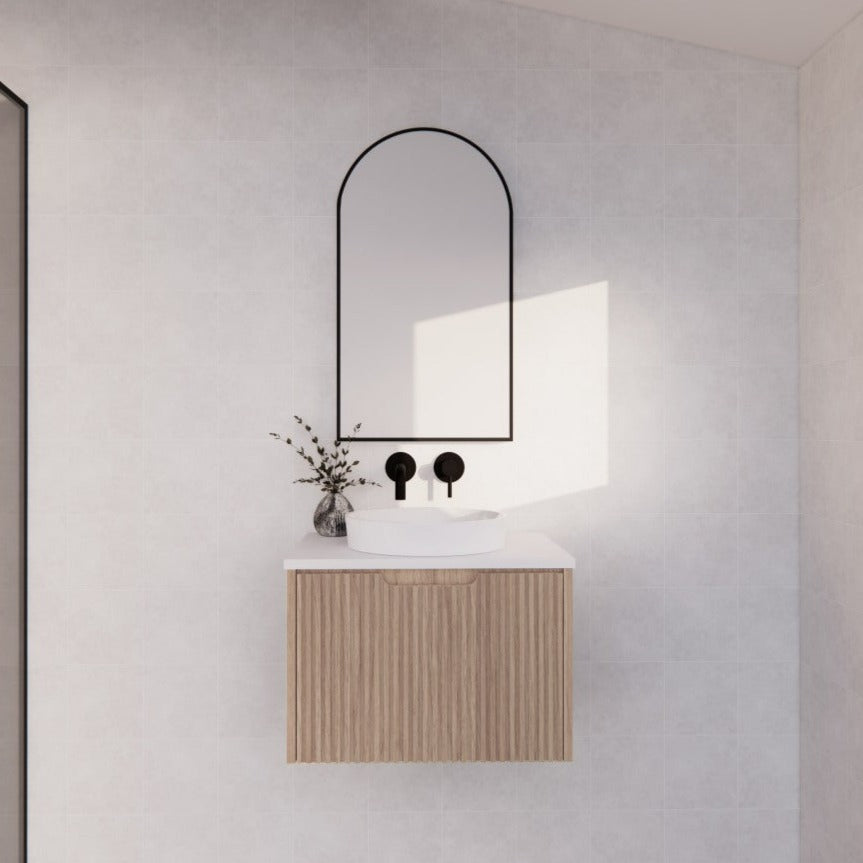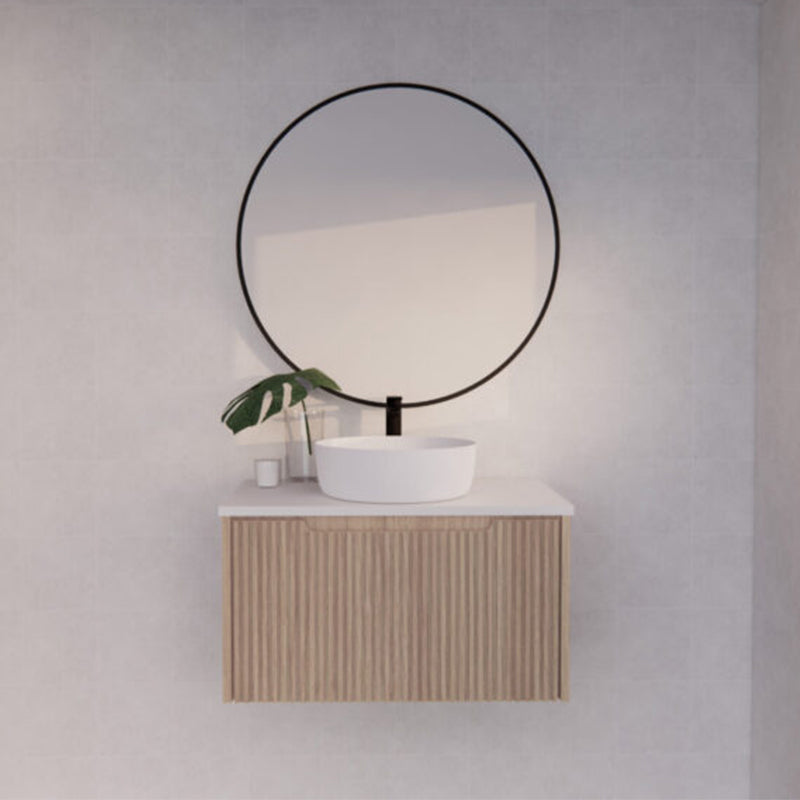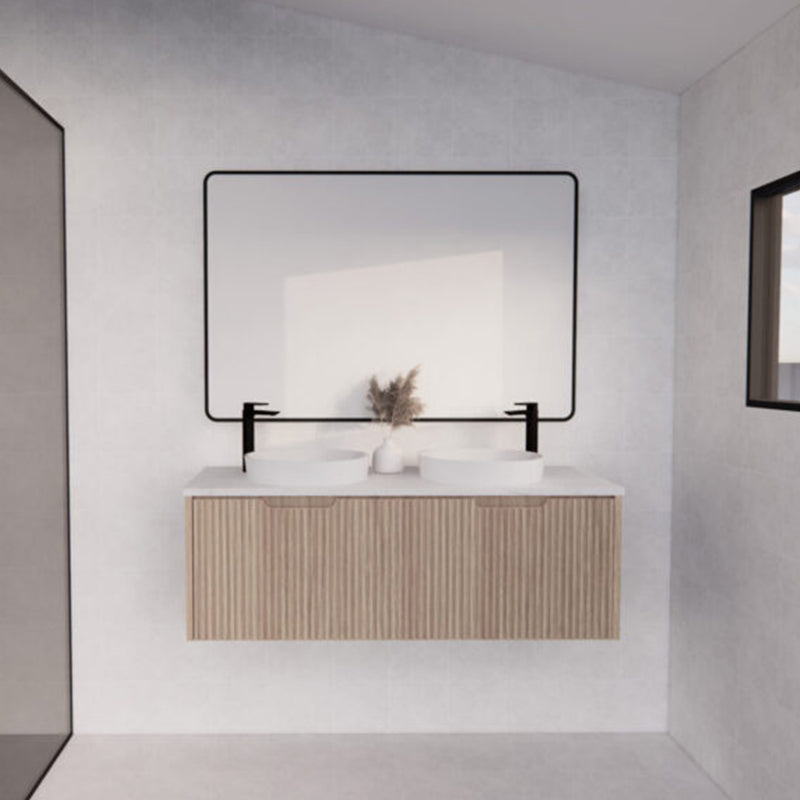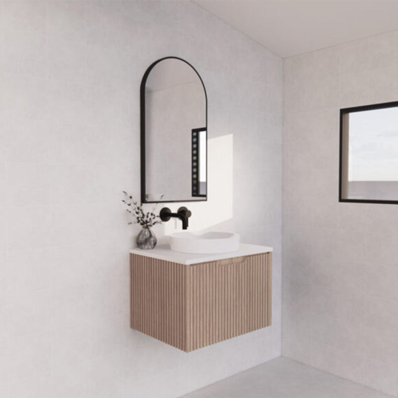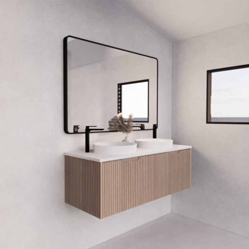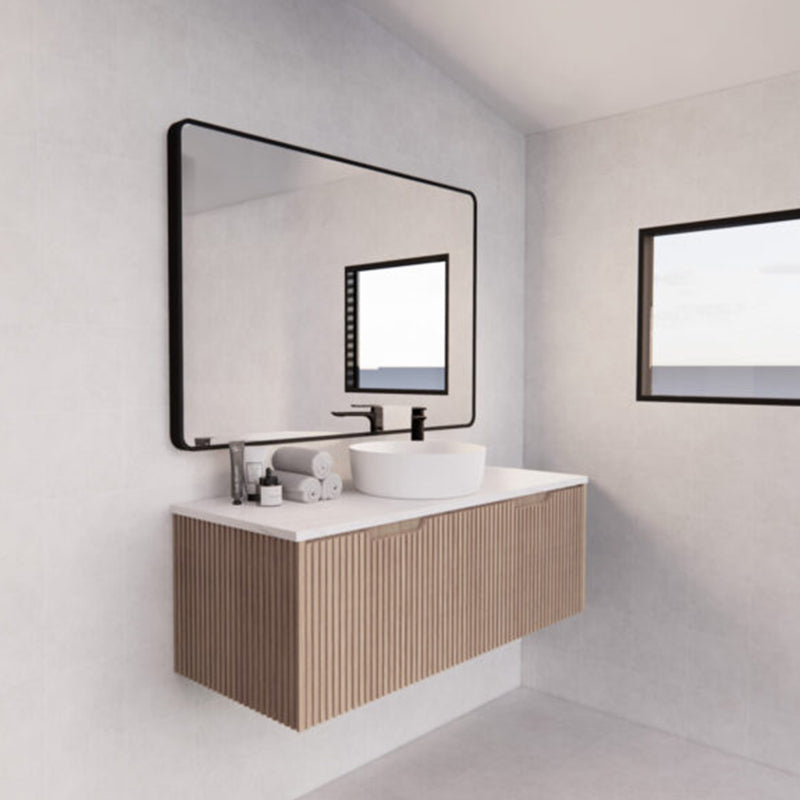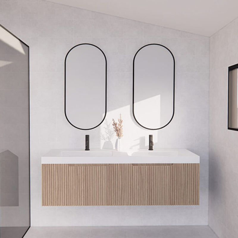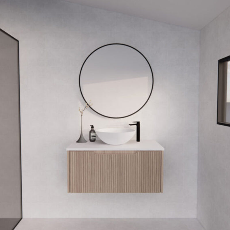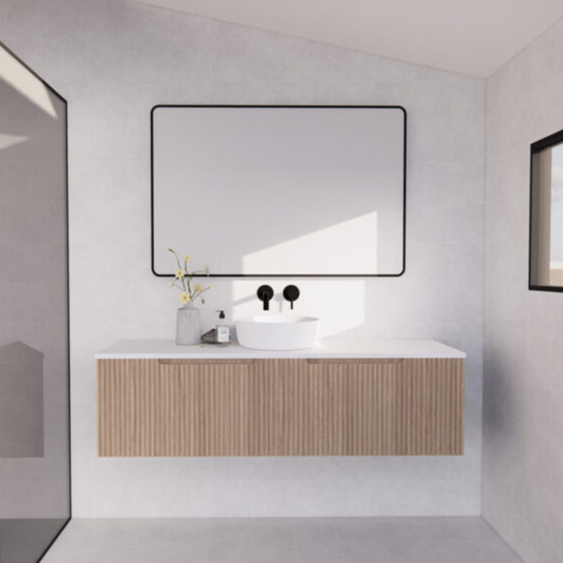 The 600-1500mm Wall Hung Vanity Fluted Style American Oak Color PVC Coating for bathroom or kitchen brings comfort and function together in the bathroom, equipped with soft closing design.