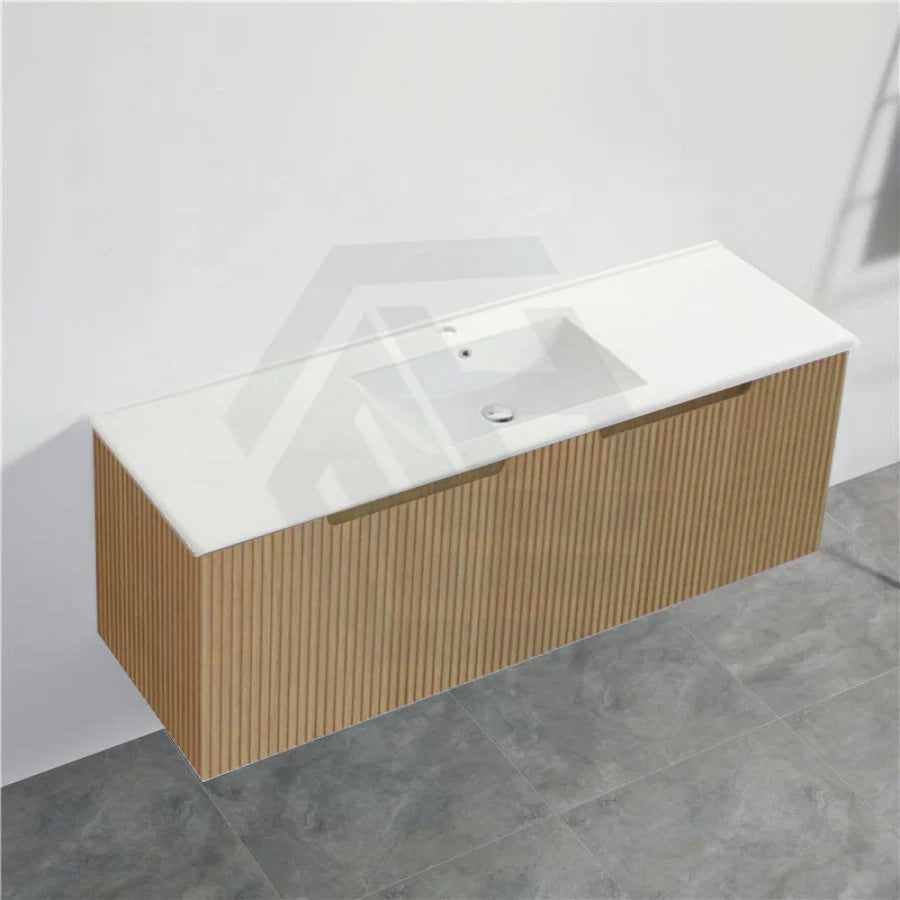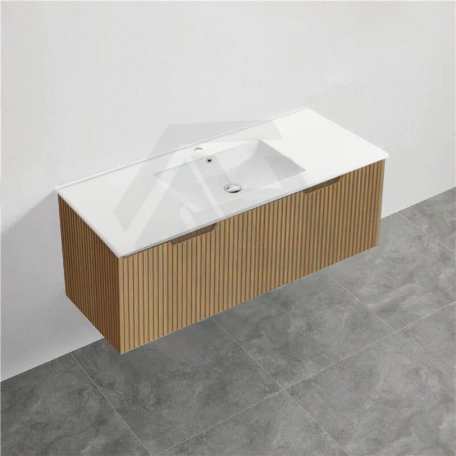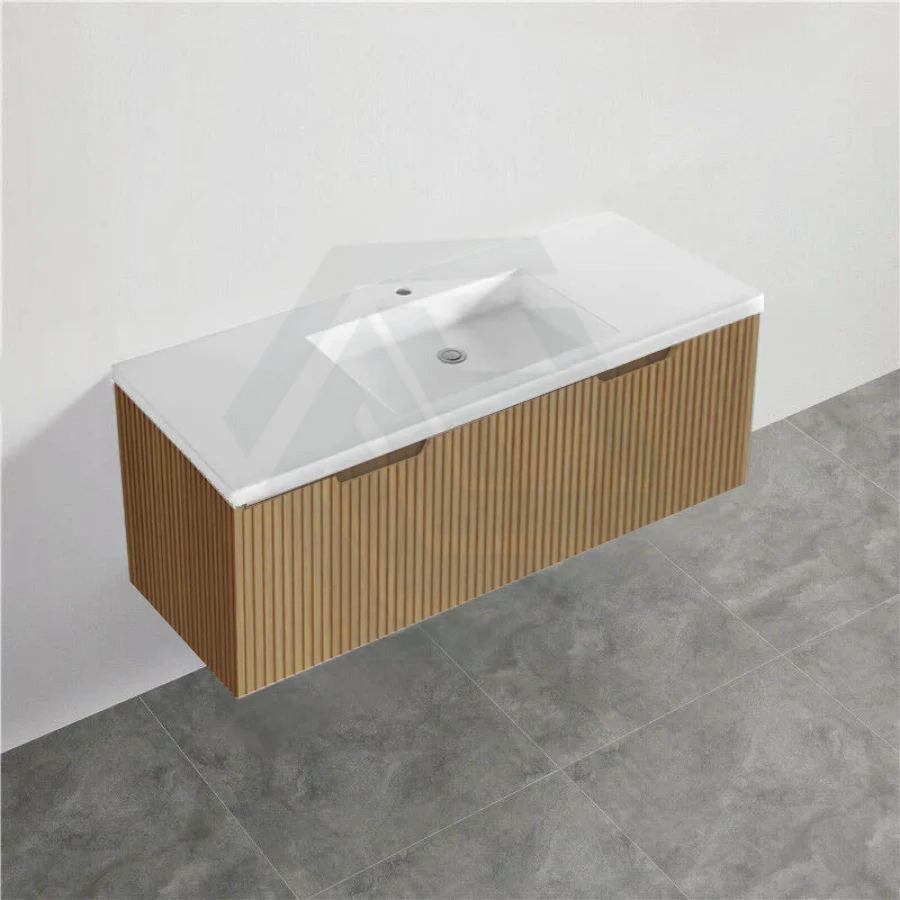 600-1500mm Wall Hung Vanity Fluted Style American Oak Color PVC Coating
