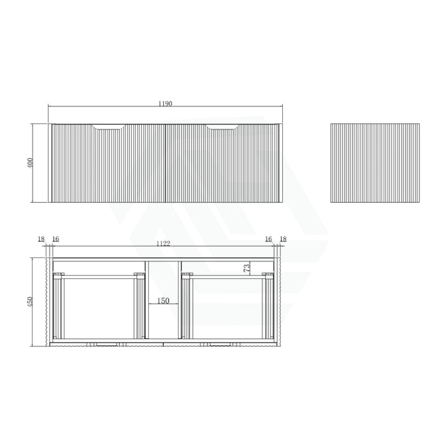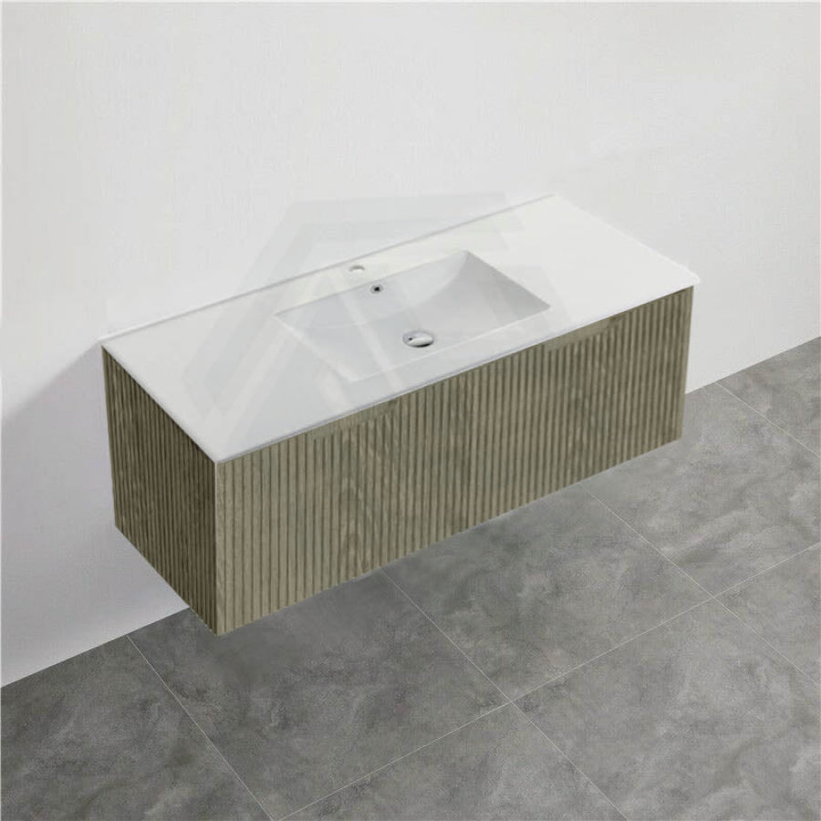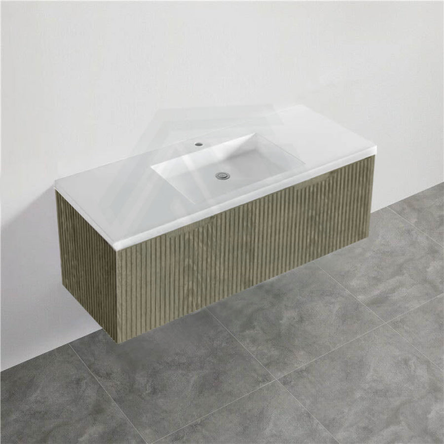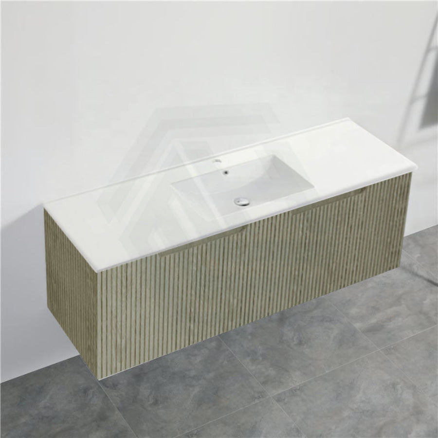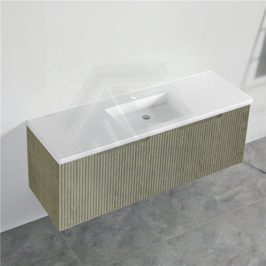 600-1500mm Wall Hung Vanity Fluted Style White Oak Color PVC Coating