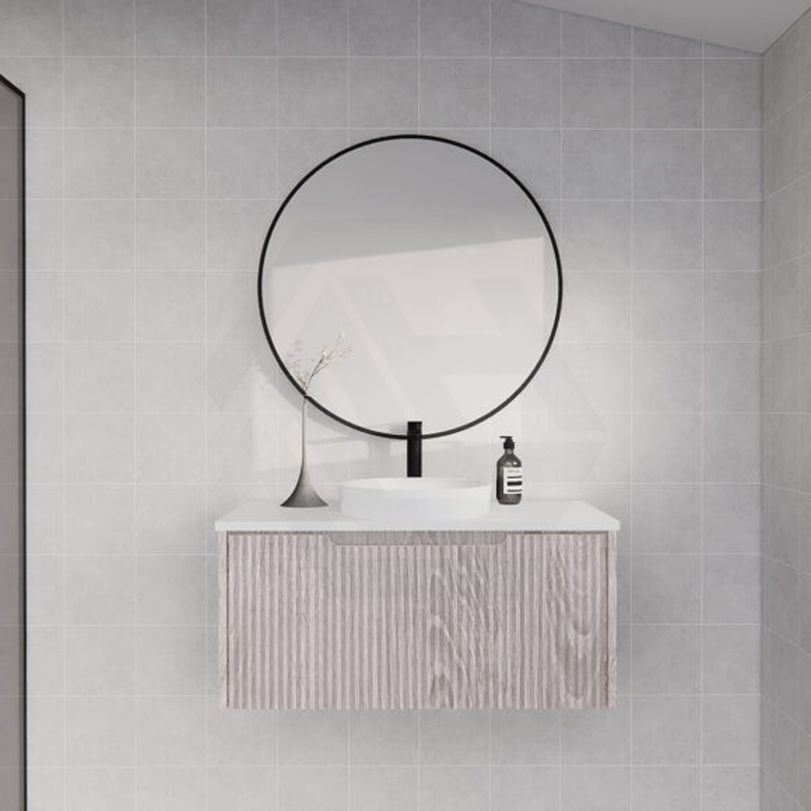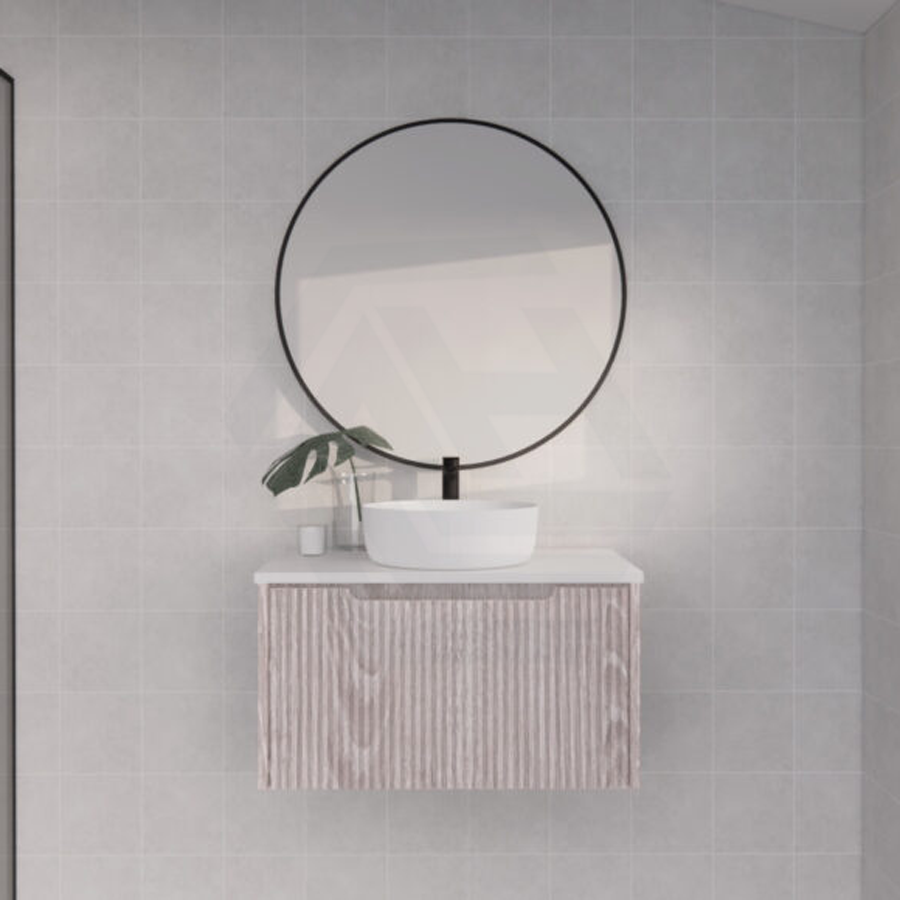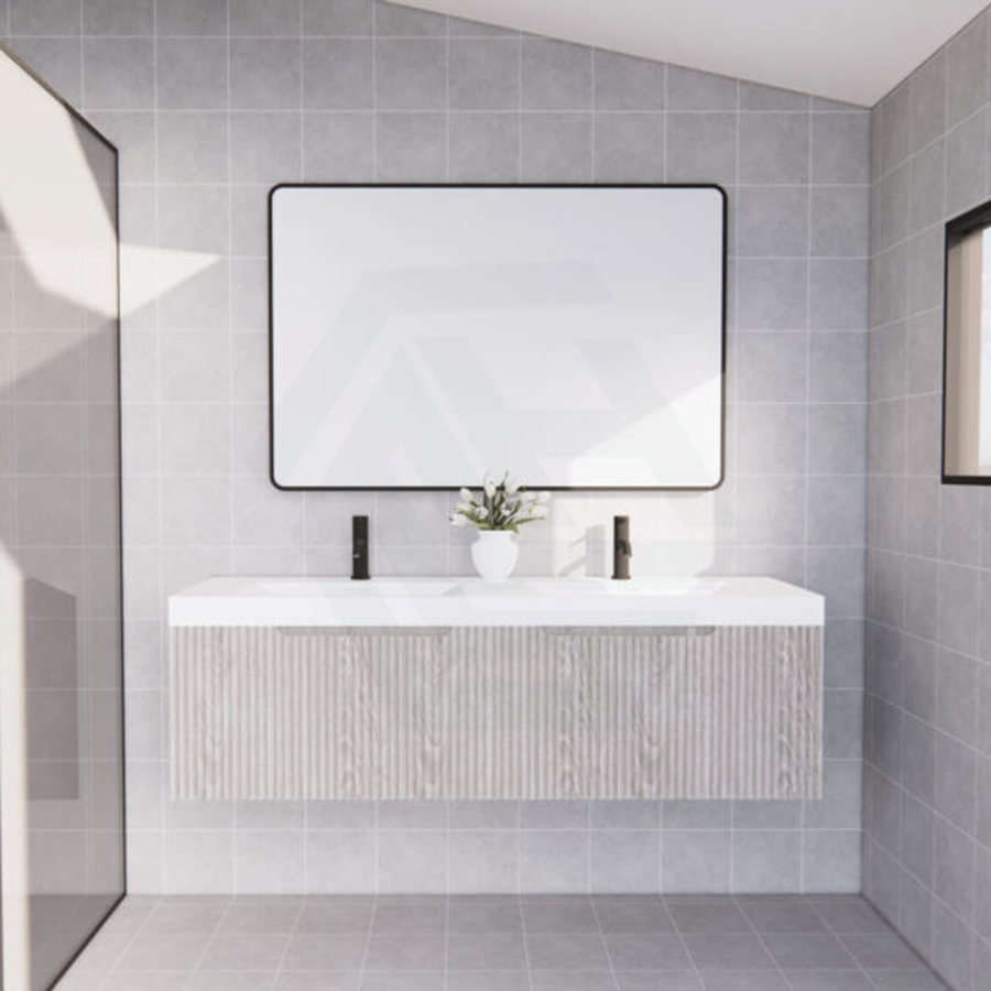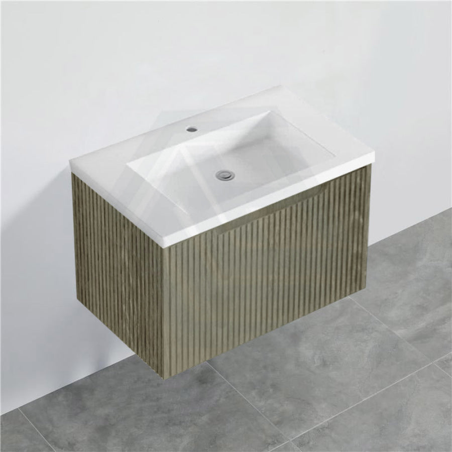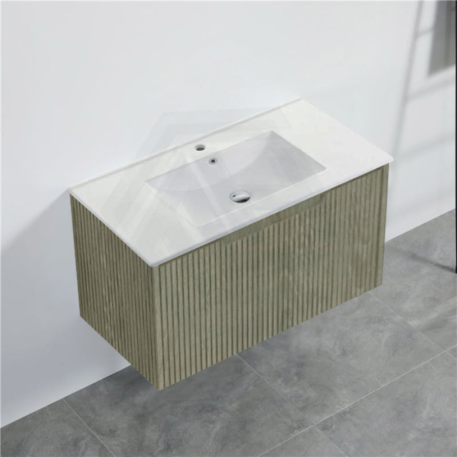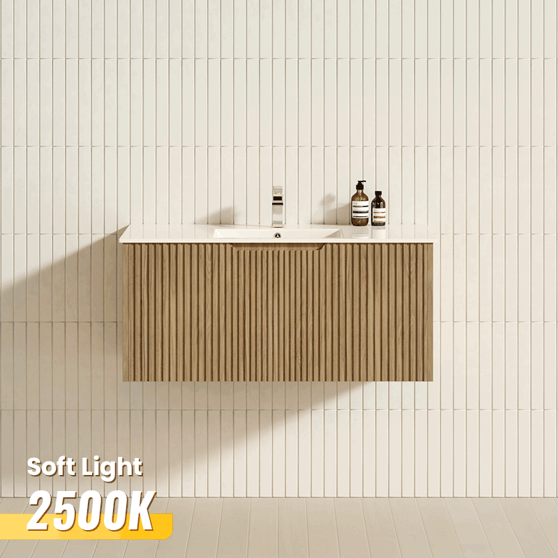 The 600-1500mm Wall Hung Vanity Fluted Style White Oak Color PVC Coating for bathroom or kitchen brings comfort and function together in the bathroom, equipped with soft closing design.