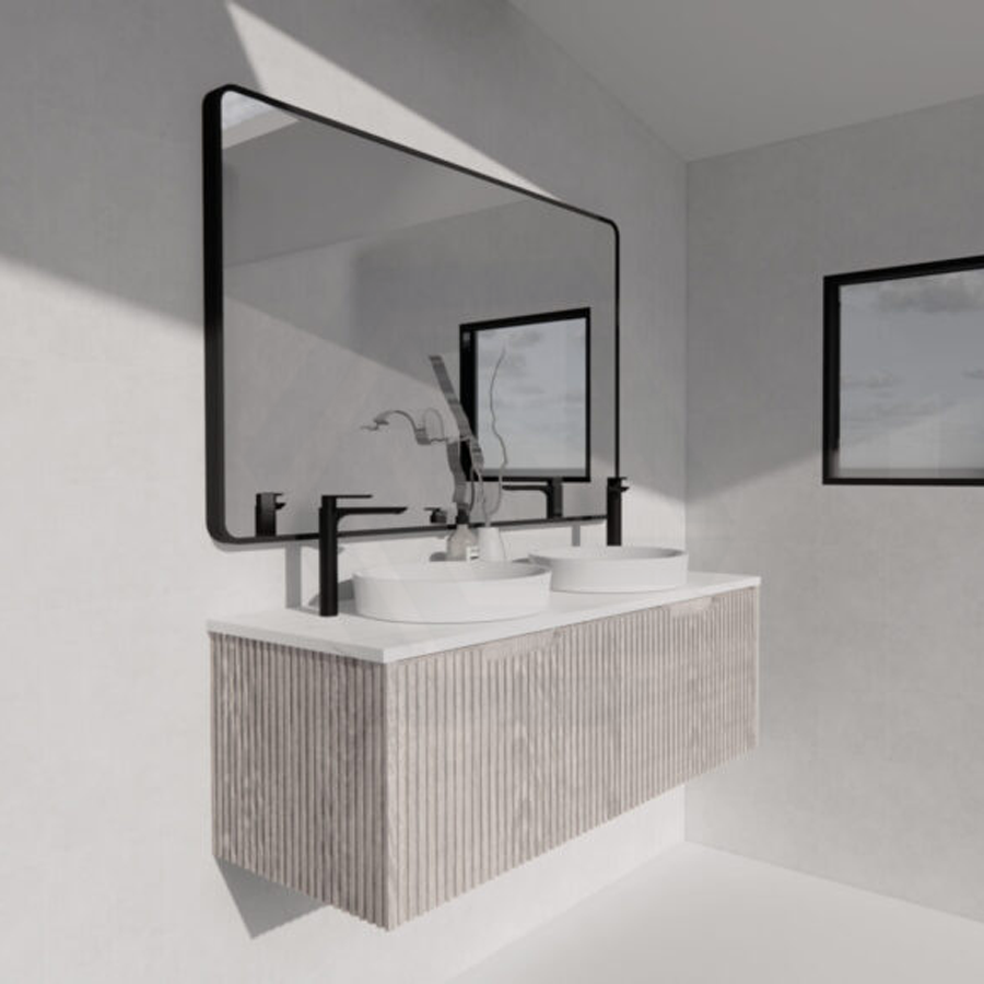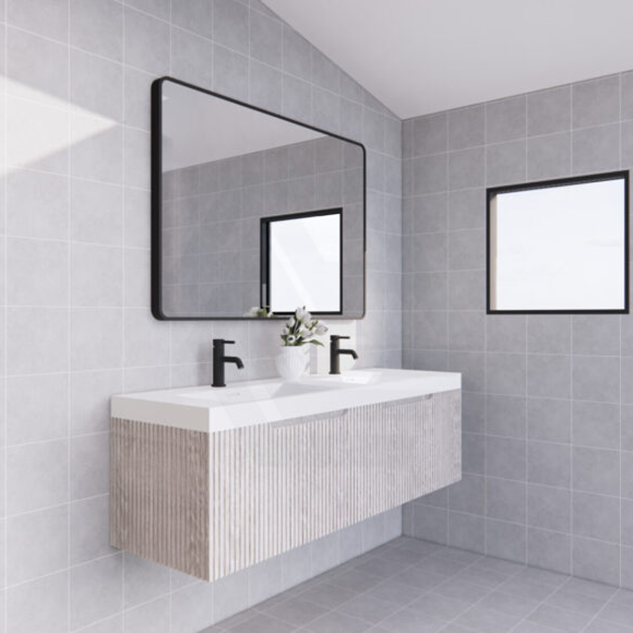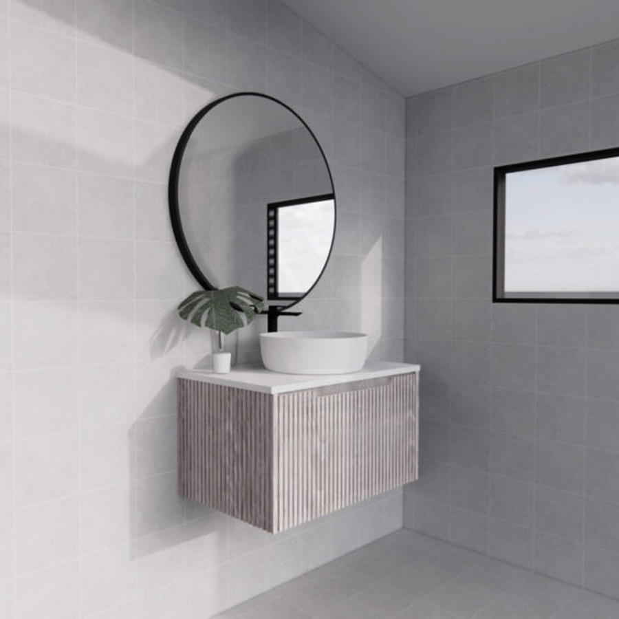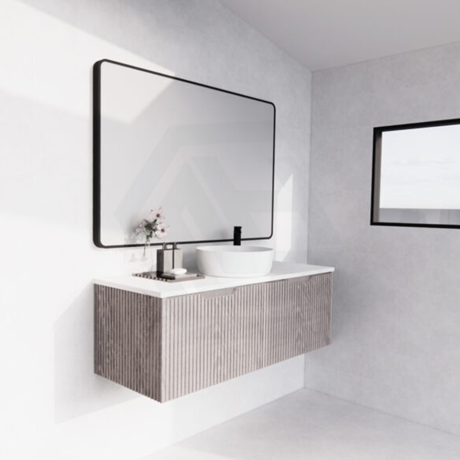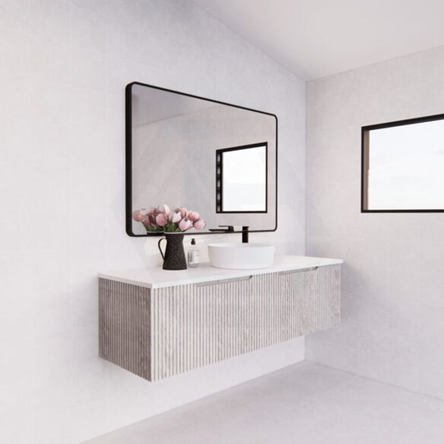 The 600-1500mm Wall Hung Vanity Fluted Style White Oak Color PVC Coating for bathroom or kitchen brings comfort and function together in the bathroom, equipped with soft closing design.