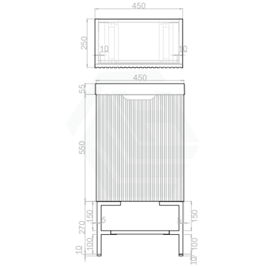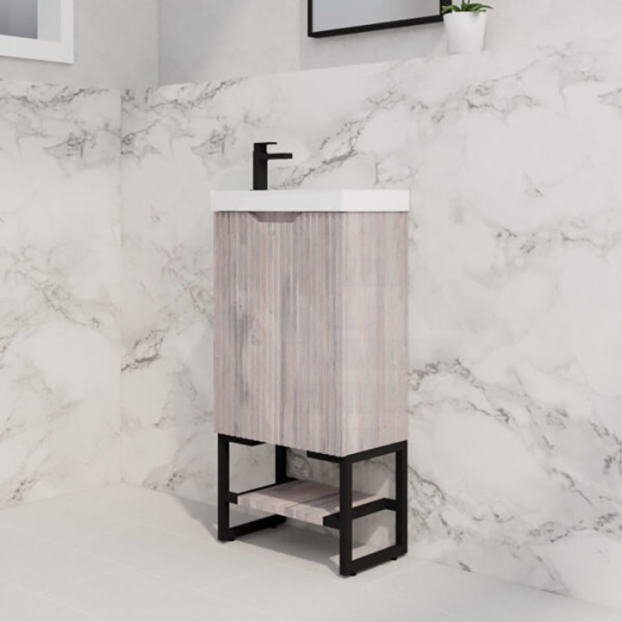 Elevate your bathroom with our 450x250x830mm Vienna White Oak Fluted Freestanding One Door Mini Vanity. Crafted with a durable poly top, this vanity offers ample storage and a stylish addition to your space. Enjoy the convenience of an overflow feature and the beauty of the fluted design. Upgrade your bathroom today!