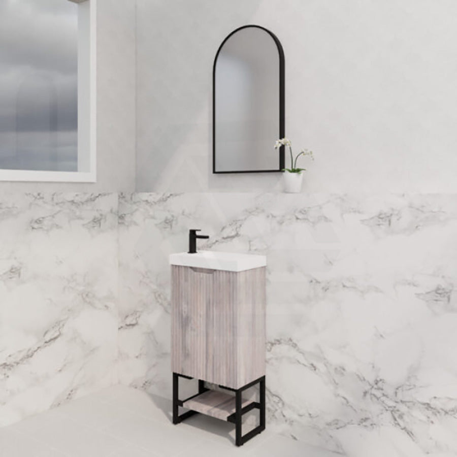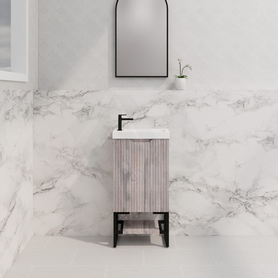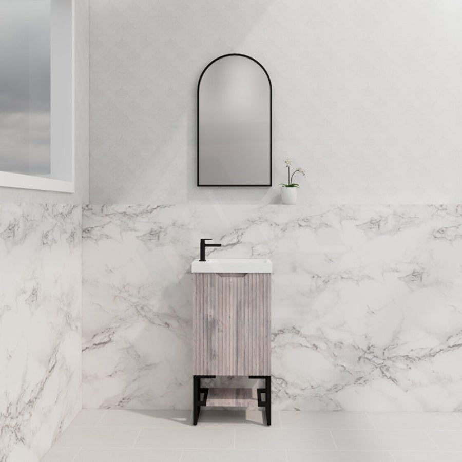 450x250x830mm Vienna White Oak Fluted Freestanding One Door Mini Vanity with Overflow Poly Top