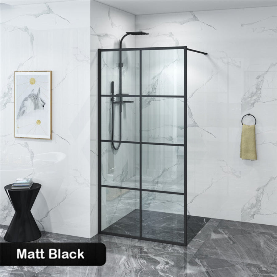 The 900-1000x2000mm Black Fully Framed Shower Screen Grid Lattice Single Door Fixed Panel Walk-in 6mm Tempered Small Glass would give a clear and elegant addition to any bathroom, especially coming with an easy-to-clean Nano Coating treatment.